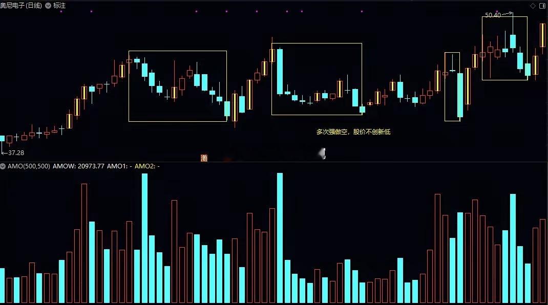 A股4月份这波强反弹,最牛的三只票。奥尼电子7天涨了94%。圣阳股份连拉7个涨停板,年后第一次出现高板票,后面还能涨多少不知道。盛视通信9连阳,4连板,后面还有能涨多少不知道。这三只牛股都没有利好刺激,纯粹靠技术面支撑上涨。这三只票在技术面上都有一个共同特点,都是在大幅度强做空后,启动主升行情。奥尼电子在长达60天的横盘过程中,有过四次放量强做空,在主升前先来一波7天的放量强做空,然后开始一波差点翻倍的上涨行情。盛视科技首板后横盘15天,进行了两波放量做空,股价不下跌,然后开始了主升行情。圣阳股份首板后连续3天放量做空,再次拉板后又是3天放量做空,并且砸出跌停板,然后开始了7连板行情。强做空、放量做空股价不下跌不创新低,这是接盘力量强大的体现,股价上涨是靠买盘力量推动的。我在以前的文章中一直强调,只有买盘力量强于卖盘力量,这是股价上涨唯一前提条件,怎么样去判断买盘力量的强弱,从做空中最容易体现出来。强做空、放量做空,股价不下跌,就体现出接盘力量的强度。特别是放量做空时,需要的接盘资金更多,此时股价不跌,就更能体现出做多力量的强势。在技术分析中,怎么样去确认买盘力量强于卖盘力量,才是技术分析核心重点。