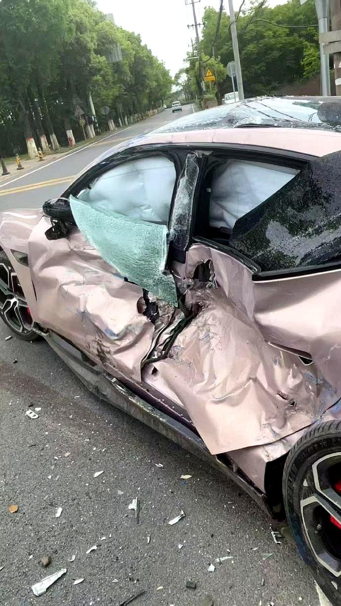 小米SU7被大货车高速侧面顶上,位置正好怼到B柱,现场最让人注意的就是:A柱基本没事,B柱有变形,但没断,乘员舱整体还算完整,气囊也正常弹开了。