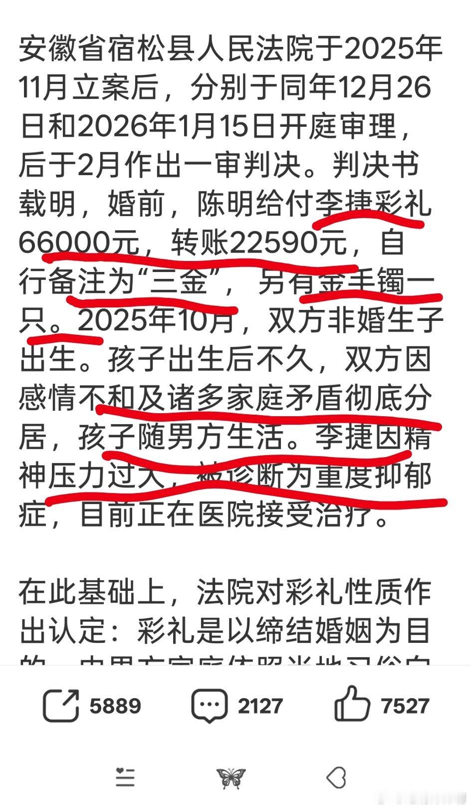 女子产后被男友起诉退彩礼和分娩费这男的即狠又贪!!那么点彩礼还要回来一半,还白得一儿子,以后要嫁这男的的人,你们先看看自己全家那点脑筋能不能算计得过这男的??女的太惨了,重度抑郁,孩子被男方抢走,自己也花了那么多钱,唉!!!