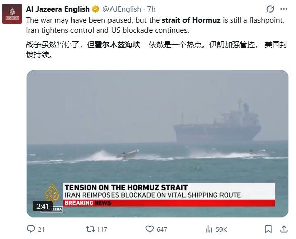 4月18日傍晚,德黑兰下令,霍尔木兹海峡重新进入封控状态;几小时前,华盛顿还在对外放话,说谈判“非常接近达成协议”。