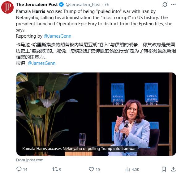 哈里斯点名特朗普:看似对外强硬,实则转移视线。