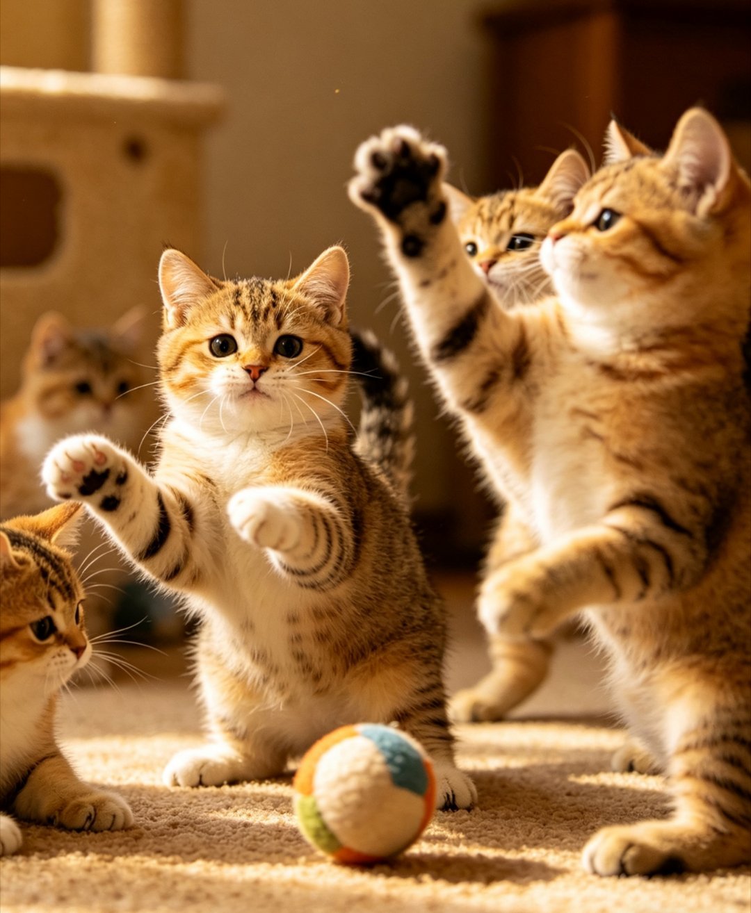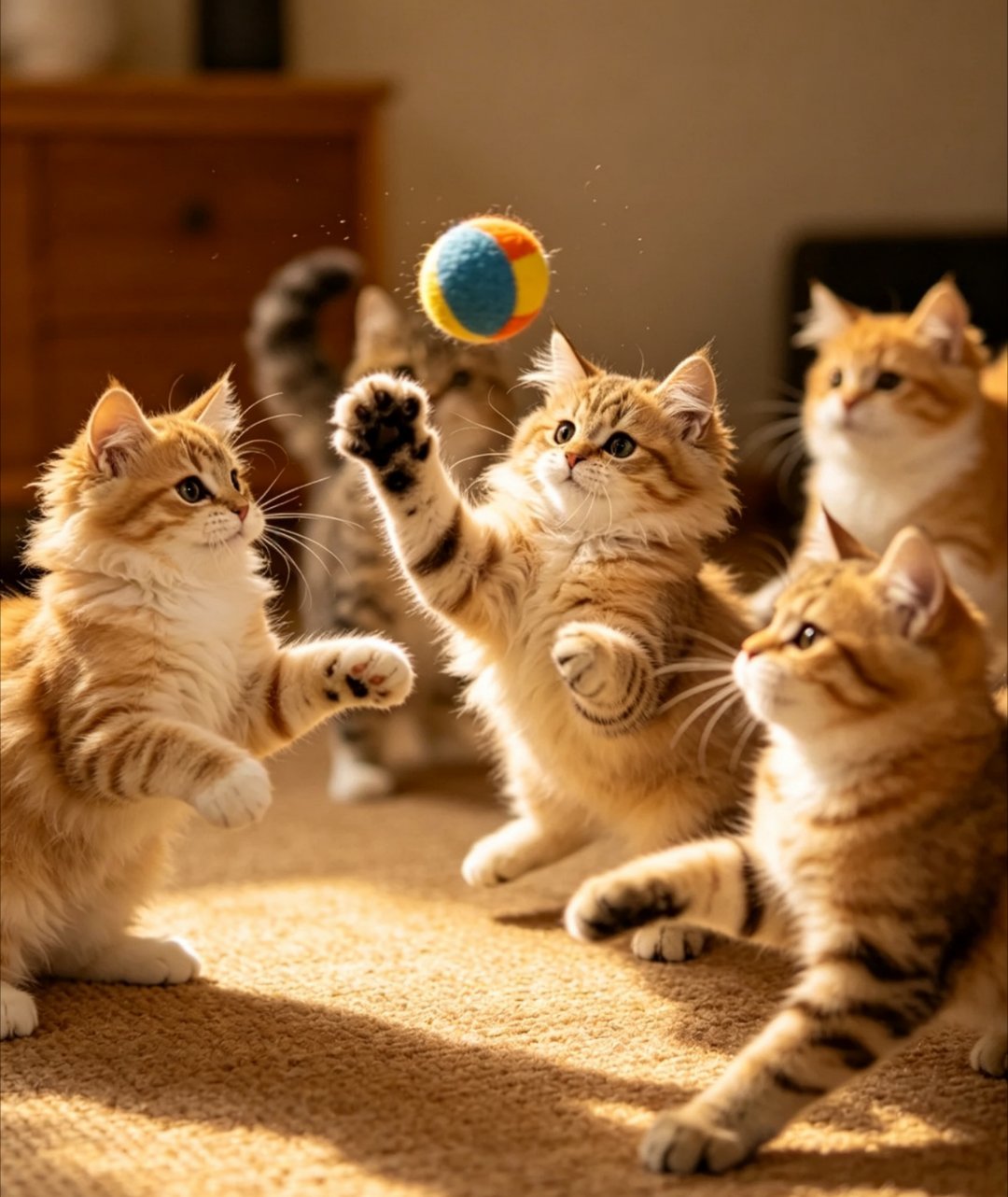 家里有娃的都懂,这猫咪一家的画面,简直把家庭地位演得明明白白。