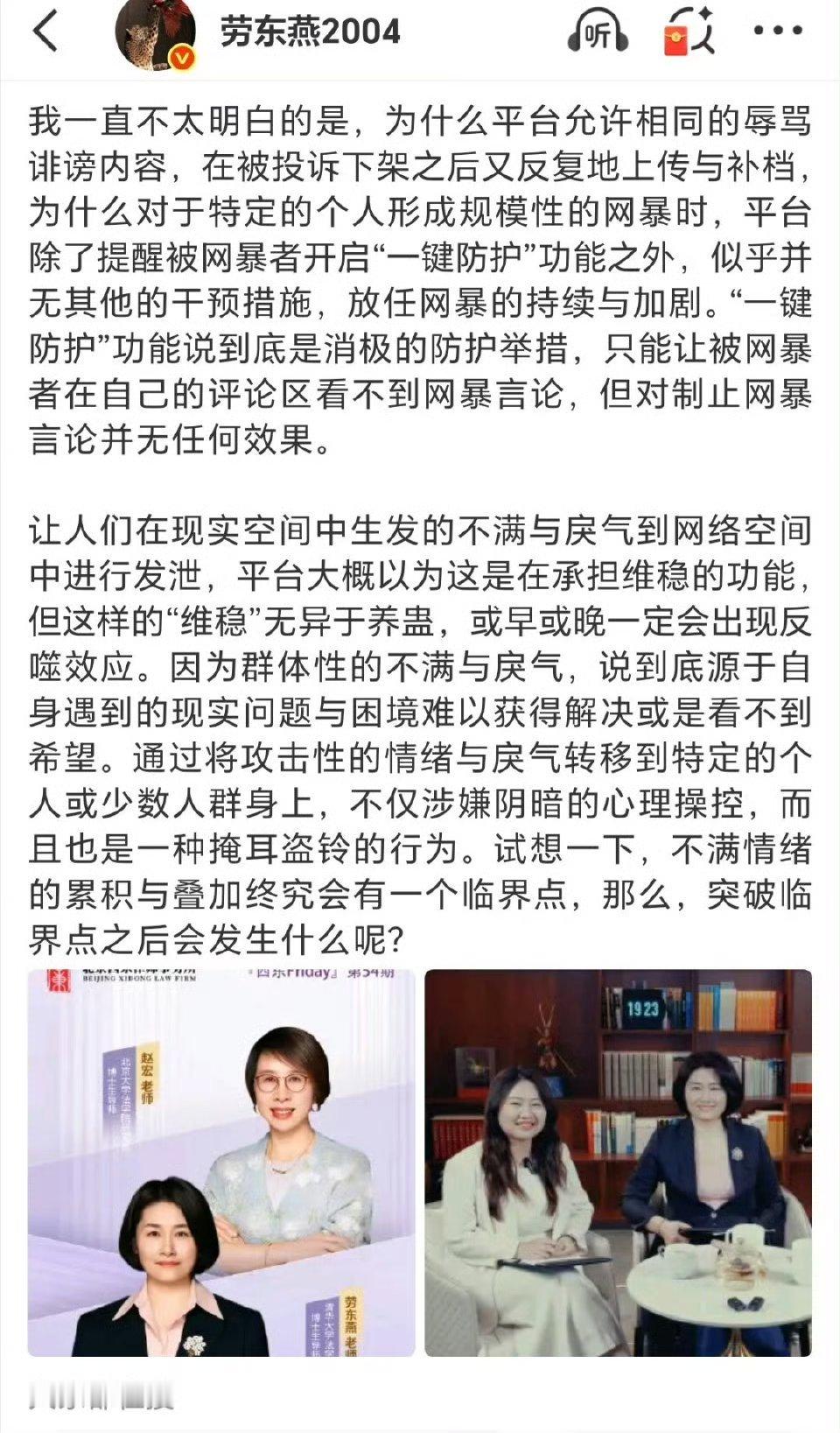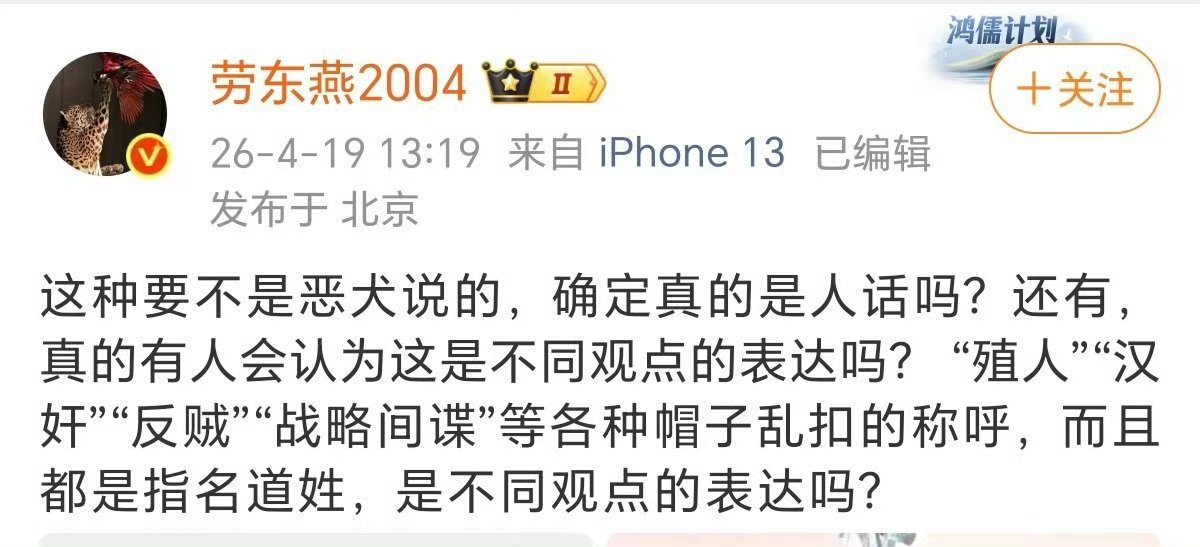 劳教授:网络暴力我的人都是恶犬,我也不是不让你们发表不同观点,但你们管我叫汉奸殖人卖国贼就是网络暴力 ……热点观点