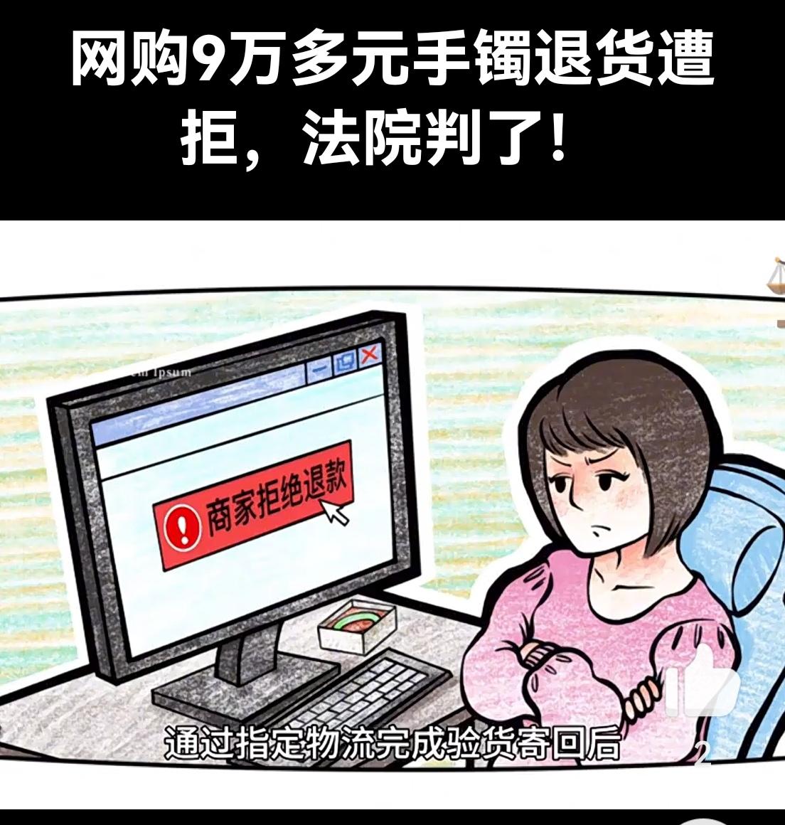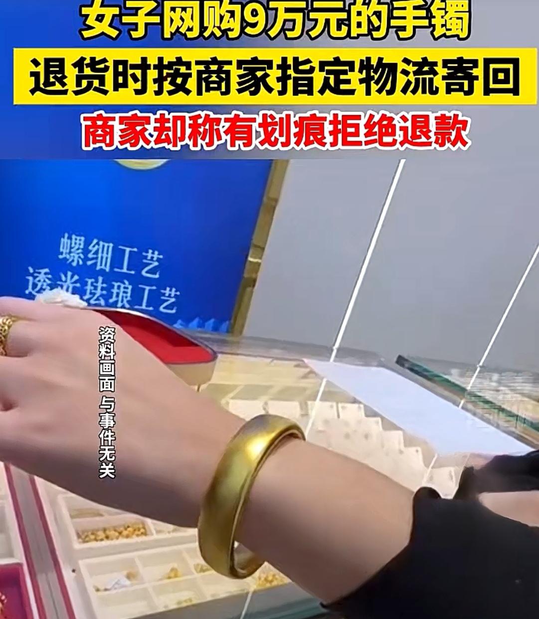 9万块的手镯戴了嫌丑要退,商家咬定有划痕死活不退钱,法院这一锤子下去,直接把网购的规矩定死了!