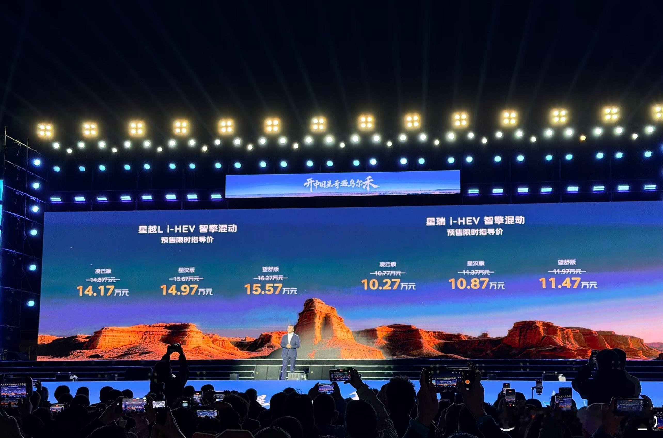吉利中国星系列,油混动力版本预售价格发布。星越L油混14.17万起,星瑞油混10