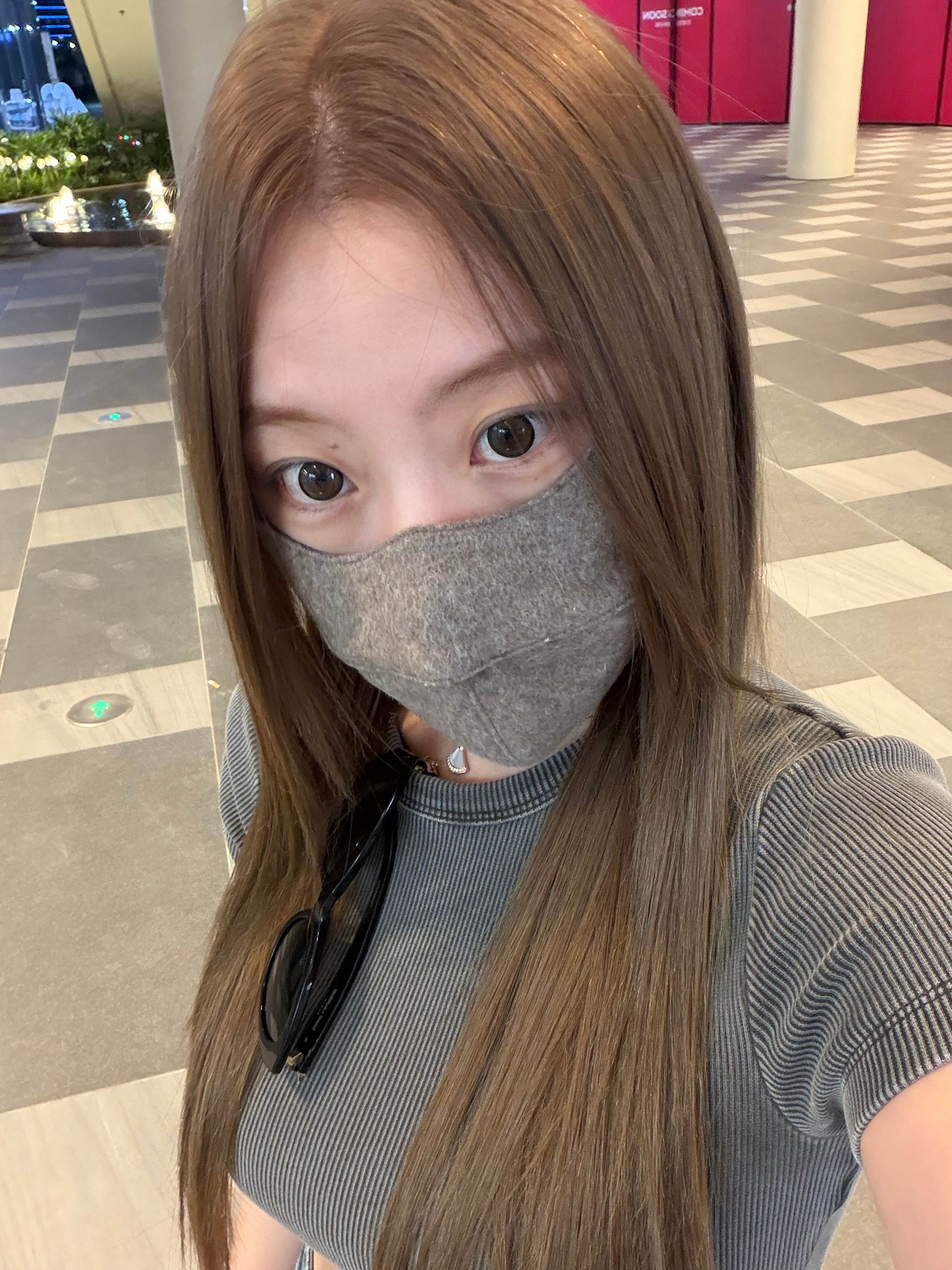 口罩是这个,墨镜是圆圆的ysl发色xhs搜的,漂了两次,实物是那种雾冷棕,颜色还是挺韩的