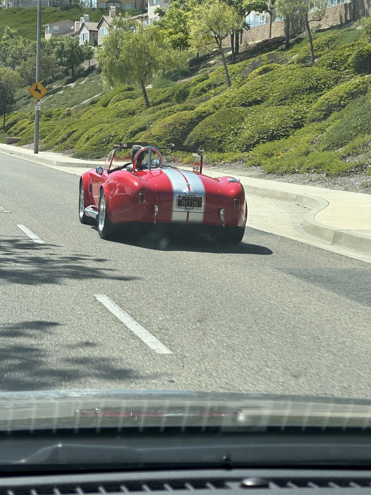 看车牌框,车行以卡罗尔·谢尔比 (Carroll Shelby)的名字命名,如果它是原厂的? 这种1960年代的 Shelby Cobra 427 原厂车,拍卖起步价基本都是 100万美金往上,顶级的甚至能冲到 500万美金。