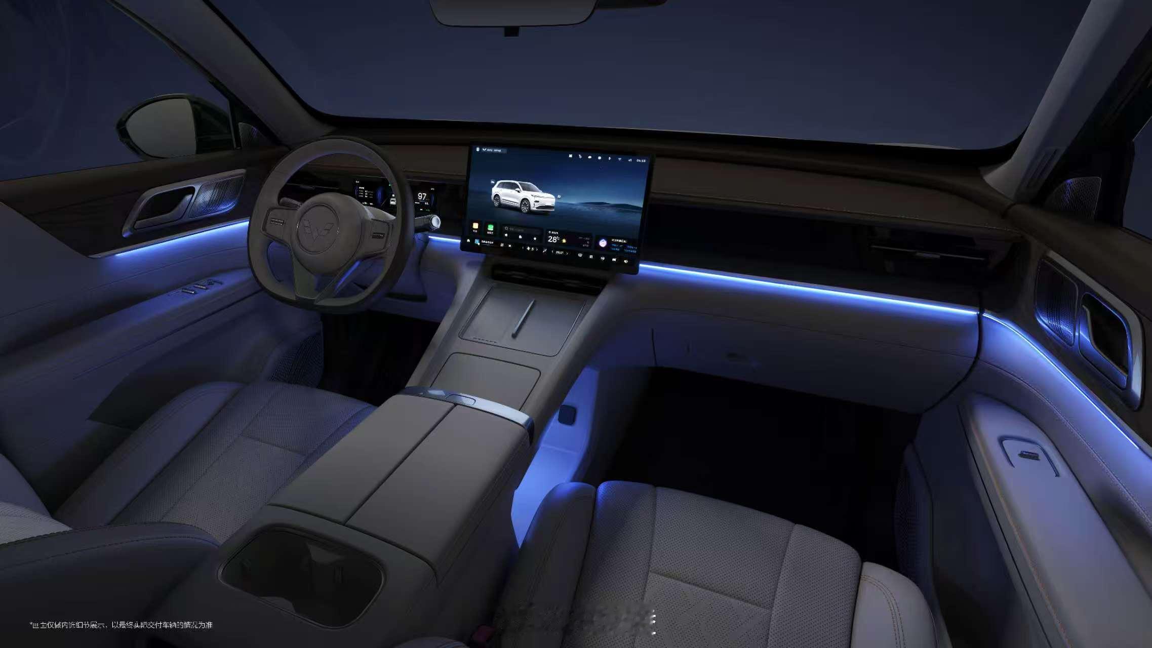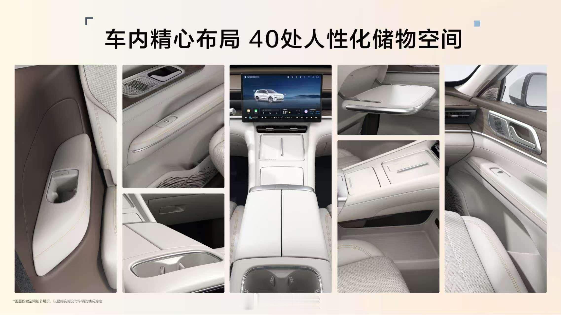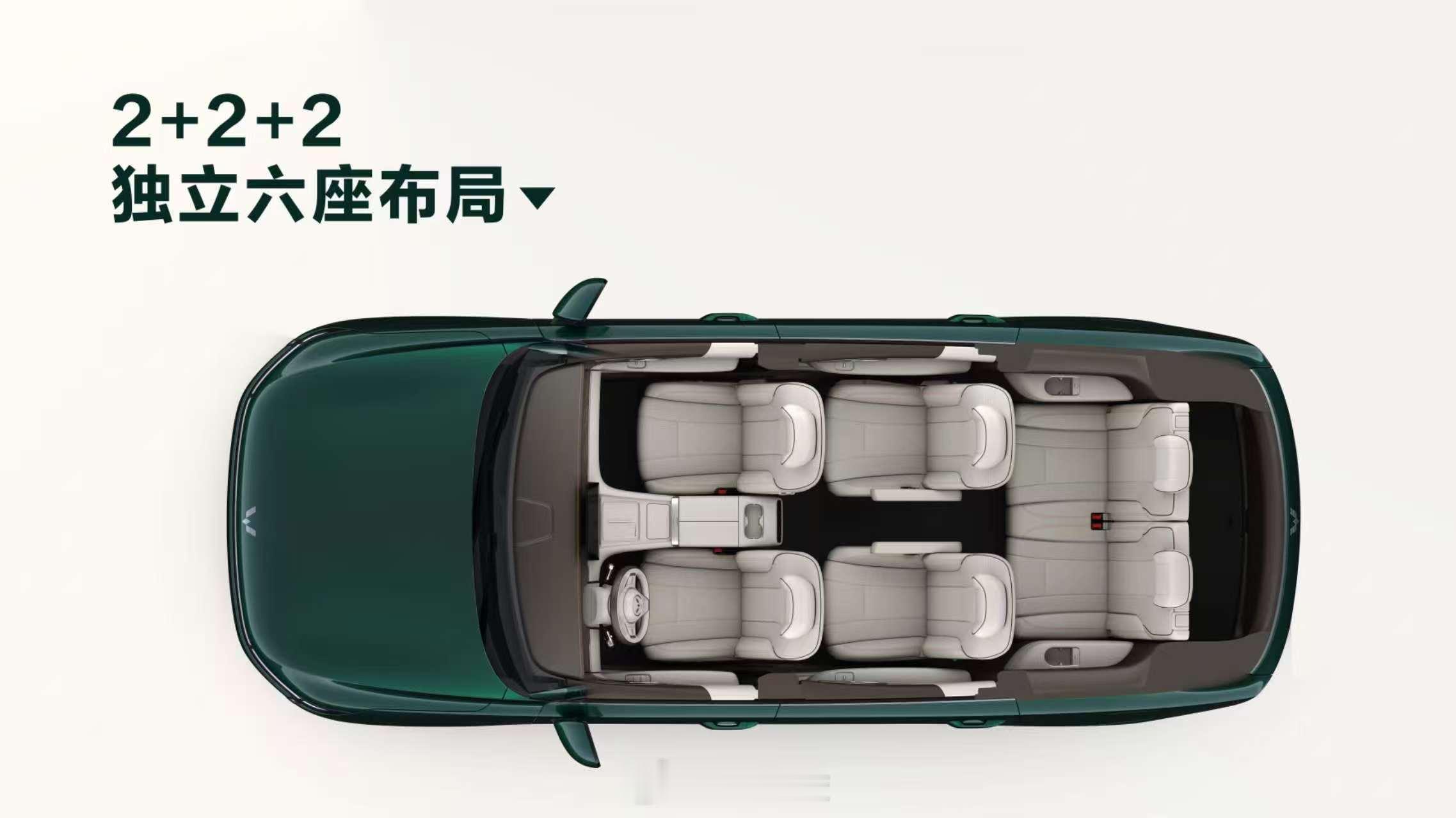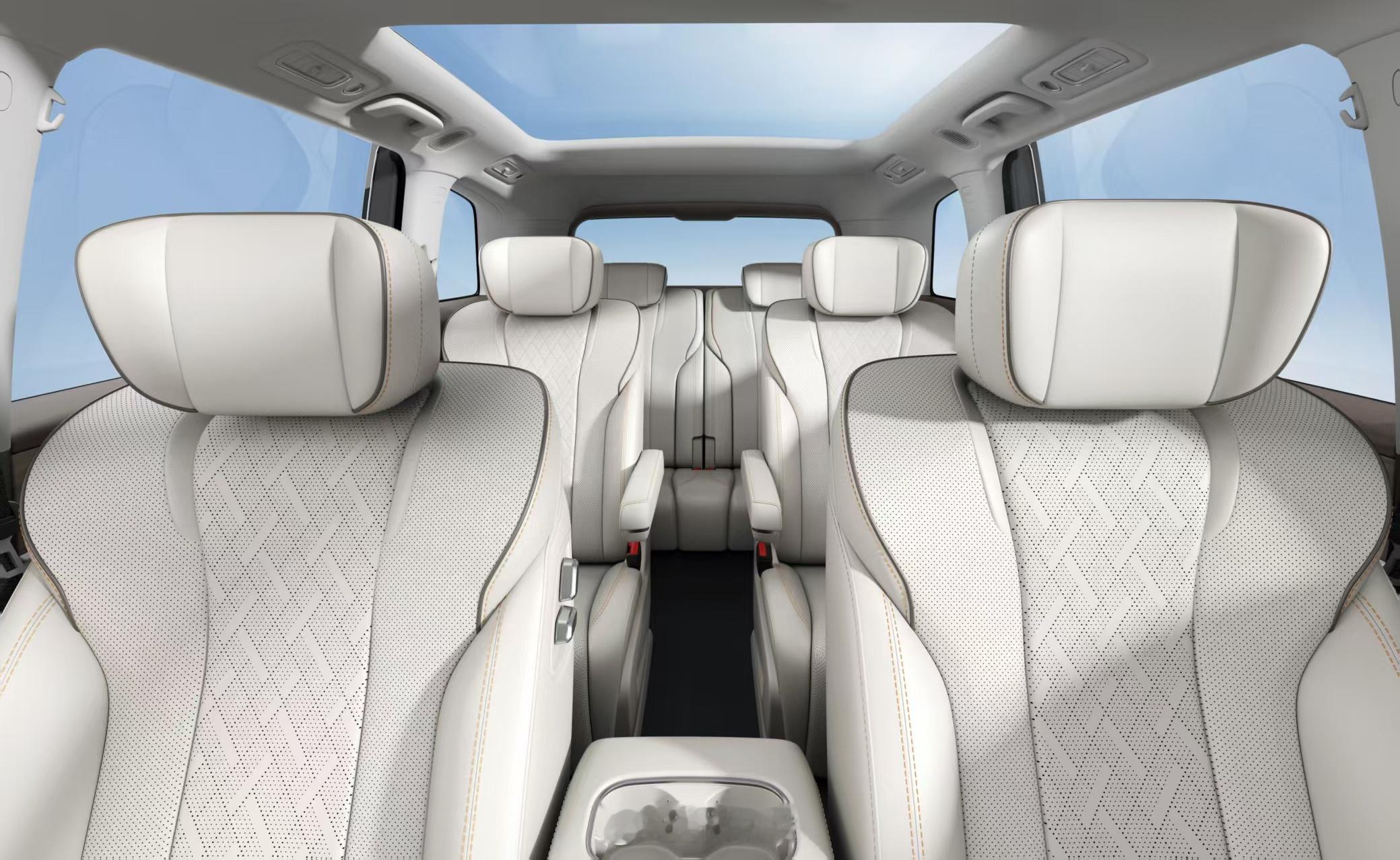车身尺寸分别为:长4980mm、宽1930mm、高1760mm,轴距直接拉到2950mm。2+2+2的六座布局,三排腿部空间标了850mm,脚底下还做了掏空。这个数据,在没有看到实车前,至少说明它没打算让第三排沦为摆设。插混版给了260公里纯电续航(CLTC),同价位里这个数挺少见。