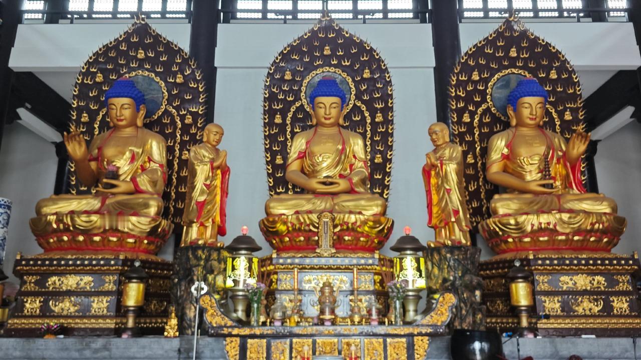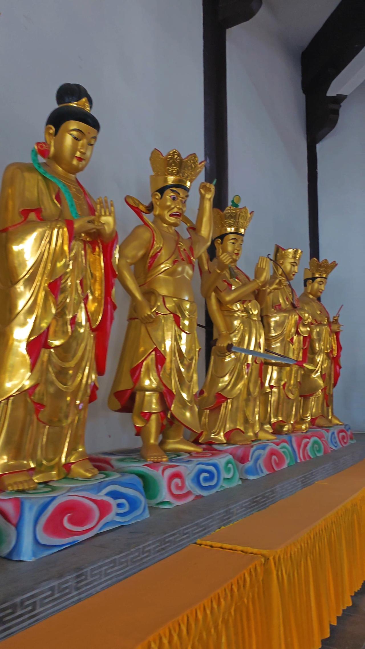 刚进山门,心就不自觉静下来。大雄宝殿是寺里的老底子,面阔五间,重檐歇山顶,看着就沉稳大气,是湖州这边最古老的大雄宝殿之一。殿里三世佛端坐,慈眉善目,两侧十八罗汉塑像神态各异,每一尊都像是藏着说不完的故事,站在这儿看一会儿,耳边的风声都像是慢了下来。