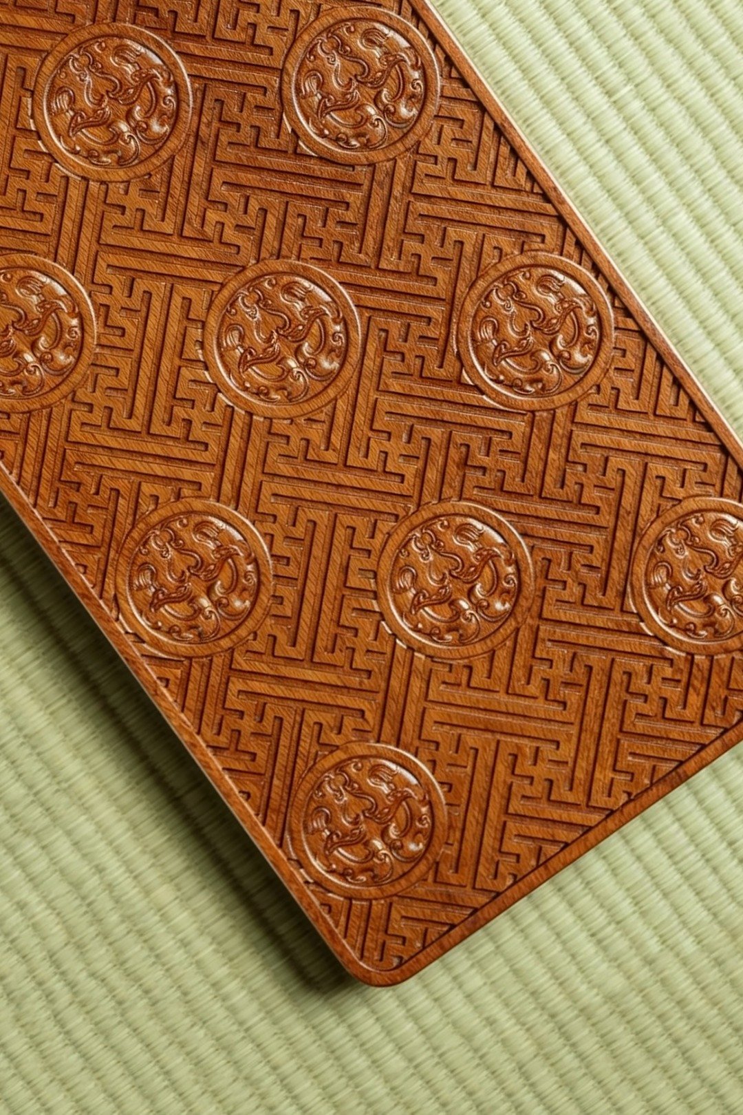 非洲酸枝 | 朱雀纹·干泡台取材非洲酸枝整料雕成,满雕朱雀万字不断纹,寓意万寿无