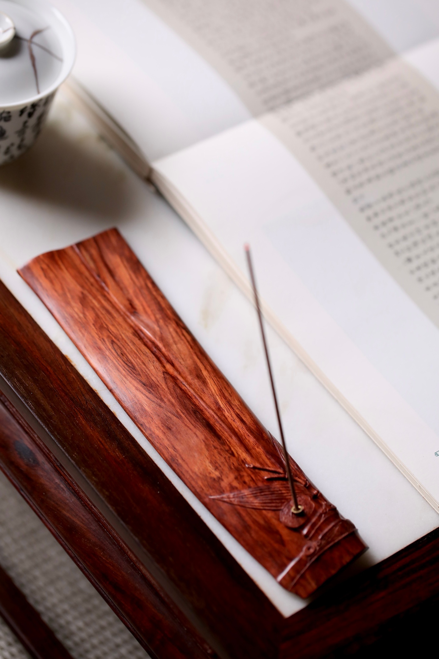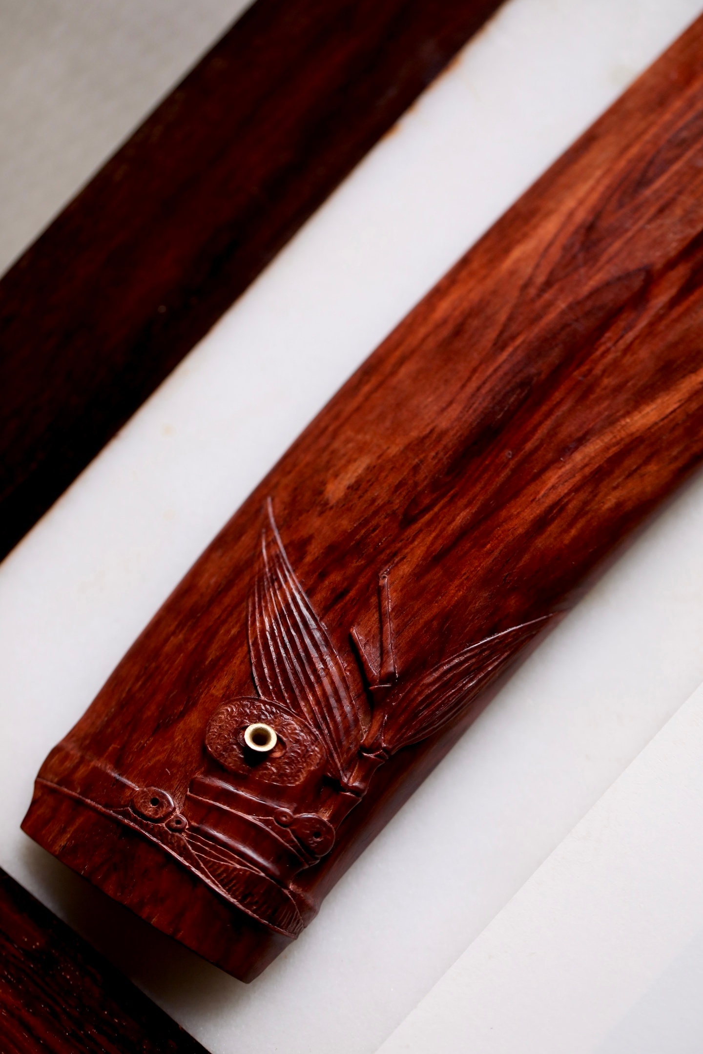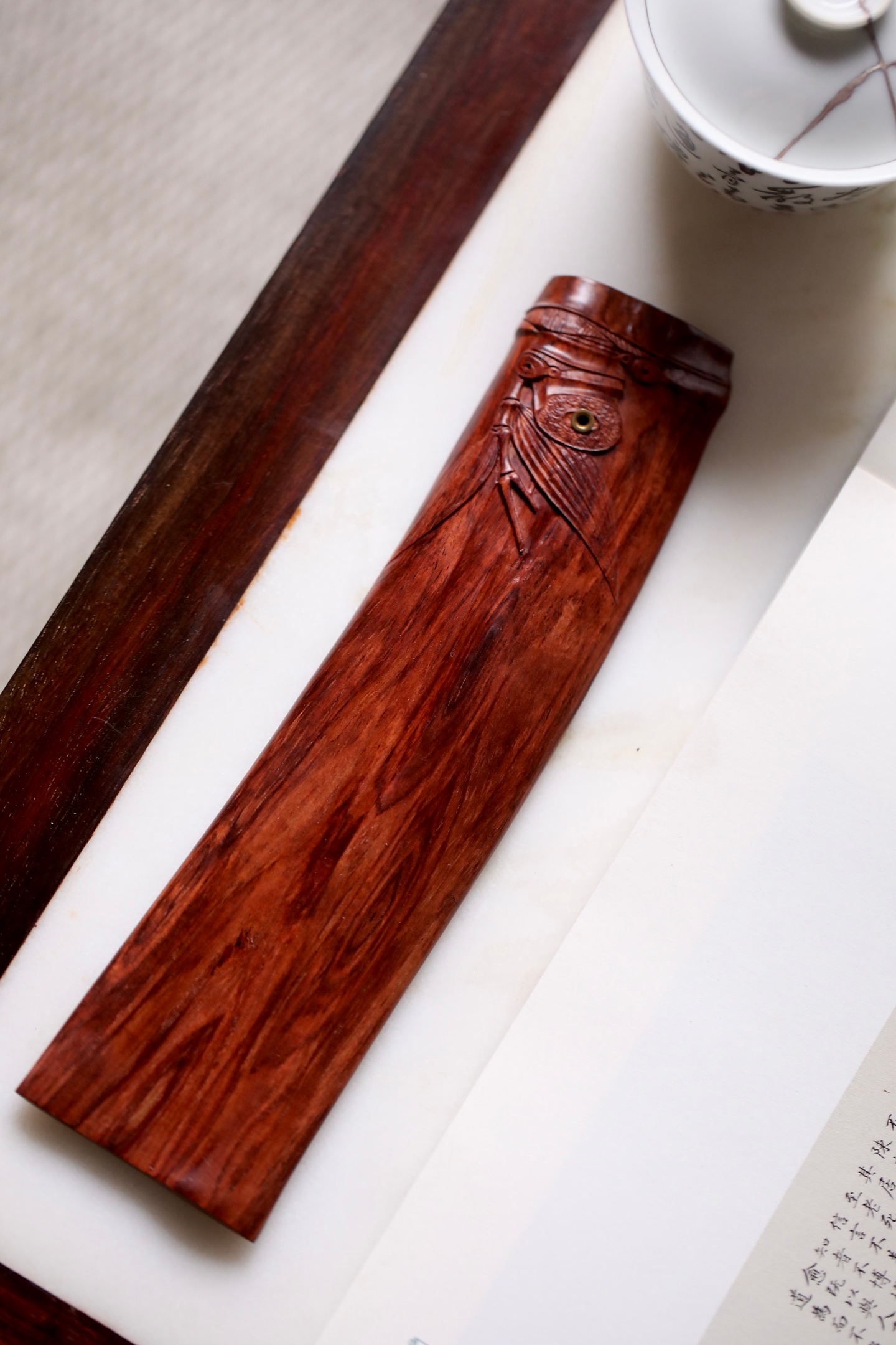 海南黄花梨 | 竹韵 香插纹理行云流水,巧雕竹叶。云烟缭绕,意境深远。20*5c