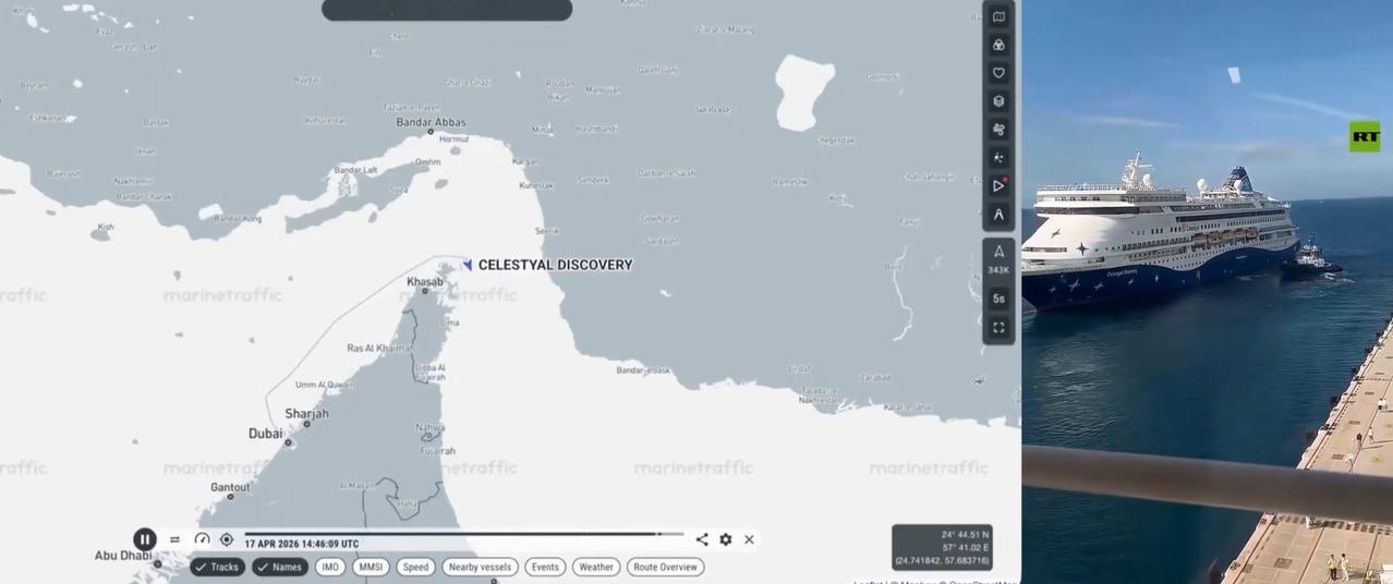油轮过不了霍尔木兹海峡,至少6艘邮轮组成船队,在海峡南侧靠近伊朗水雷区,可能遭受炮火袭击的情况下,从昨天开始,全速穿越霍尔木兹海峡。
