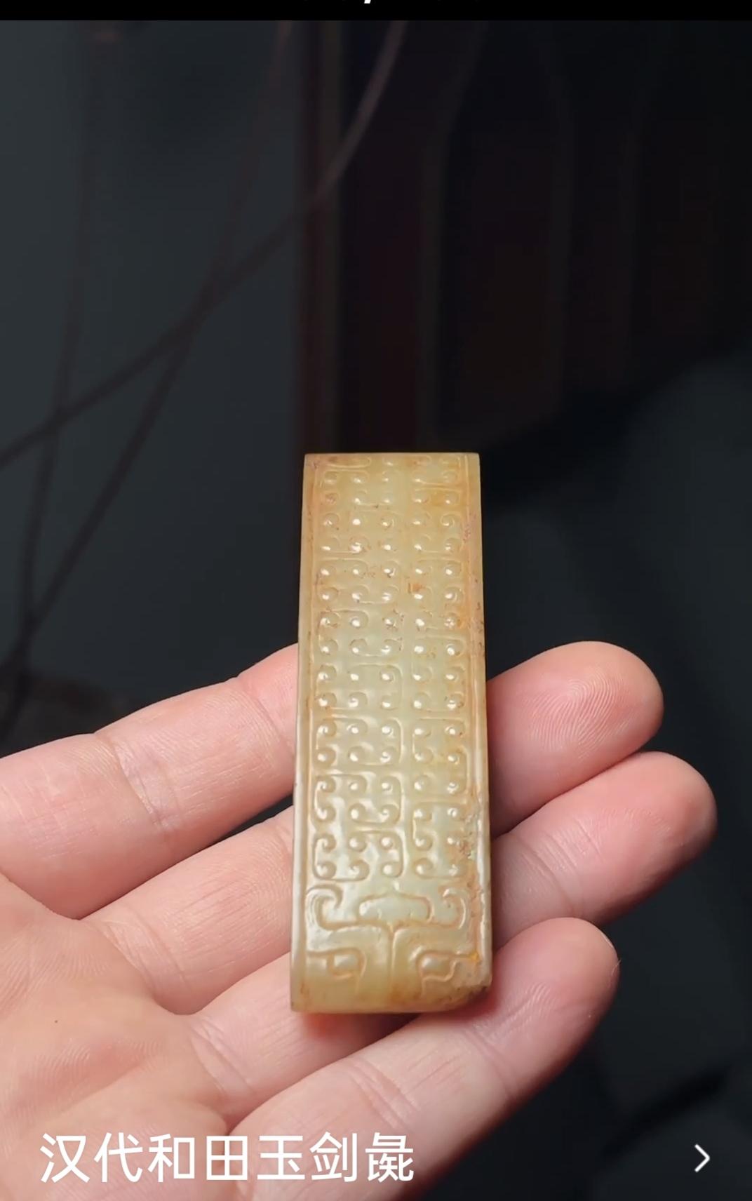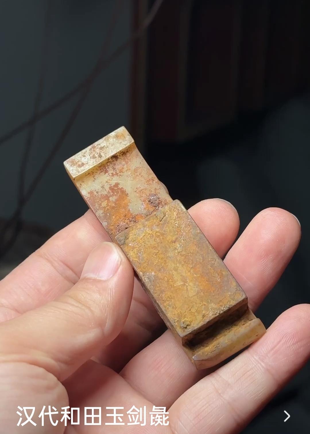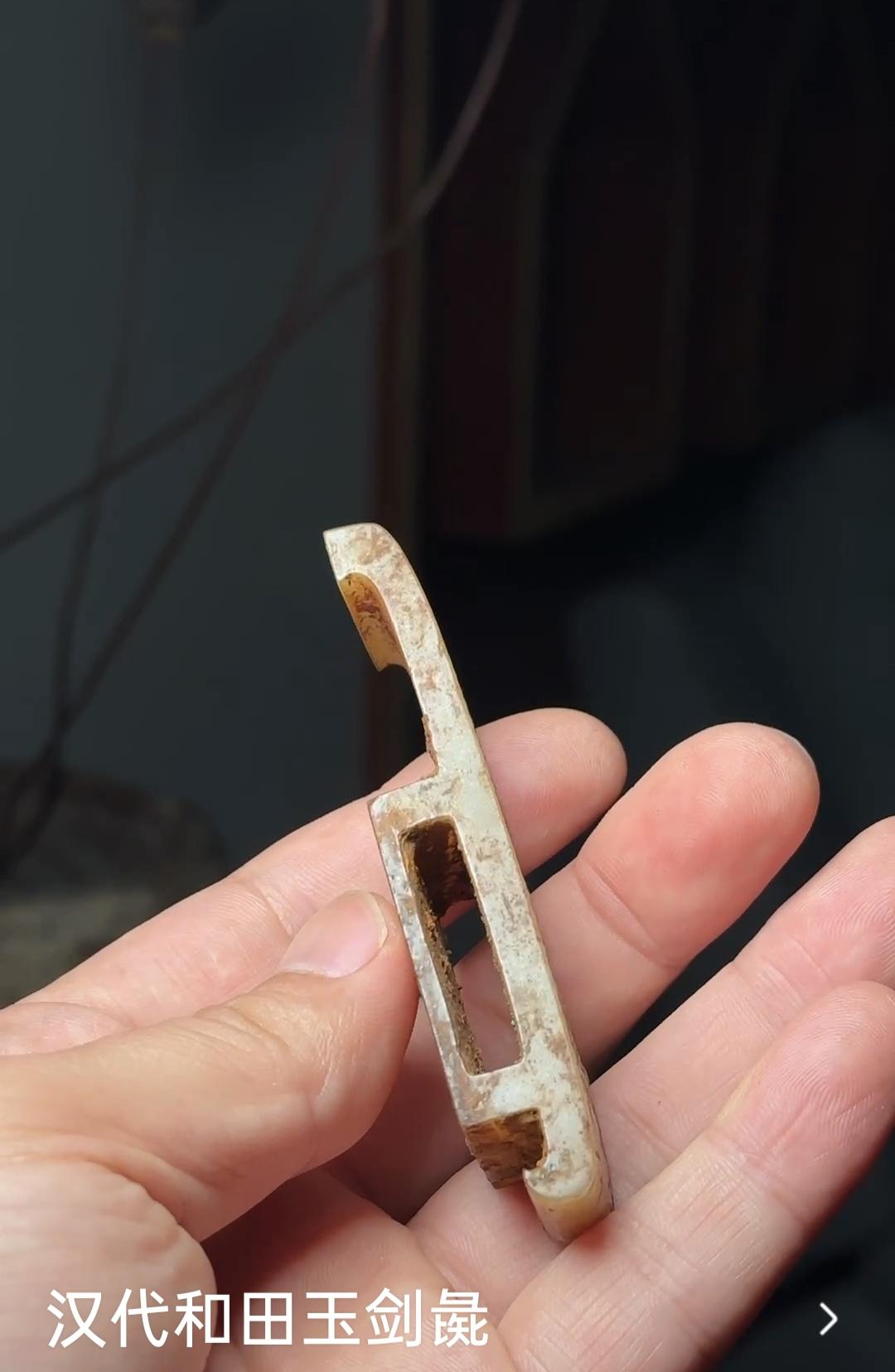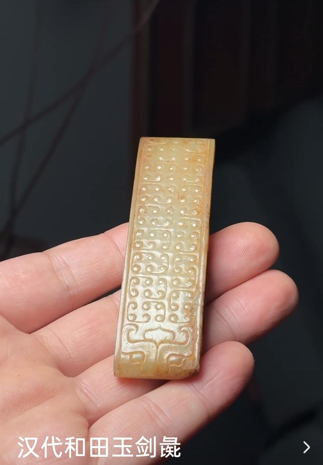 汉代和田玉勾云纹剑彘 原生红沁美物