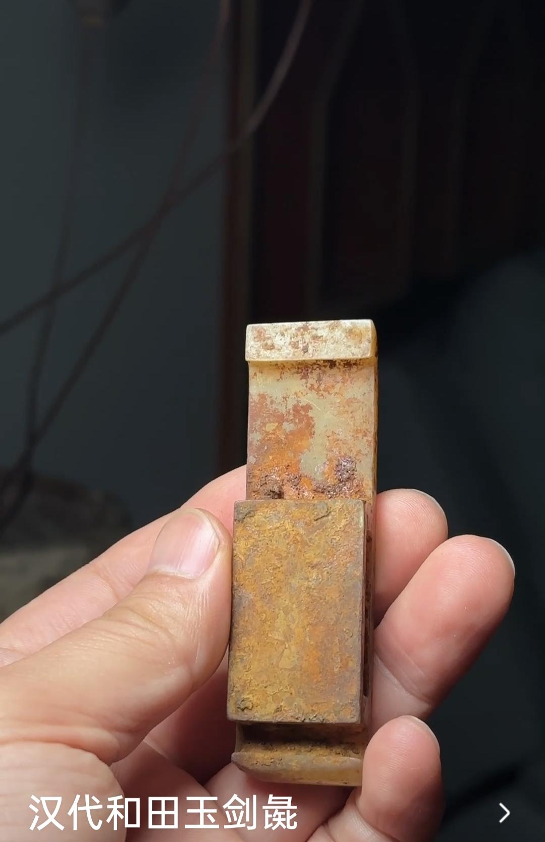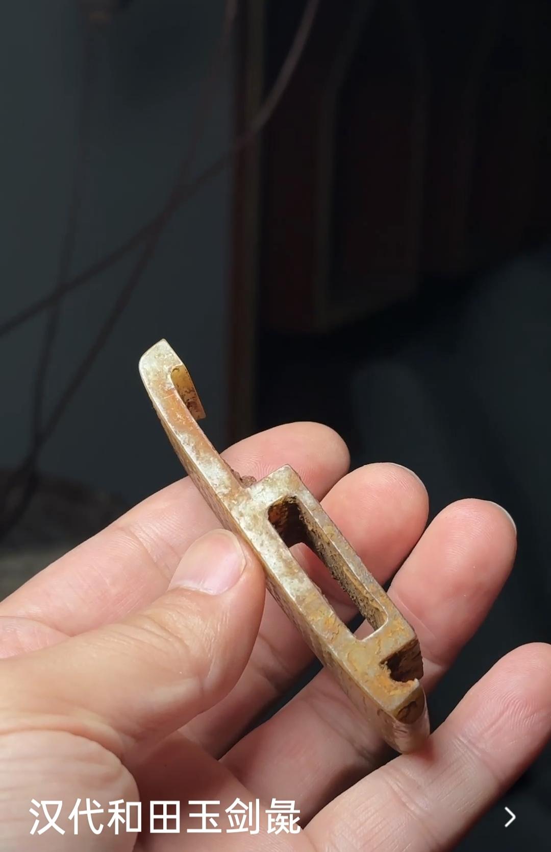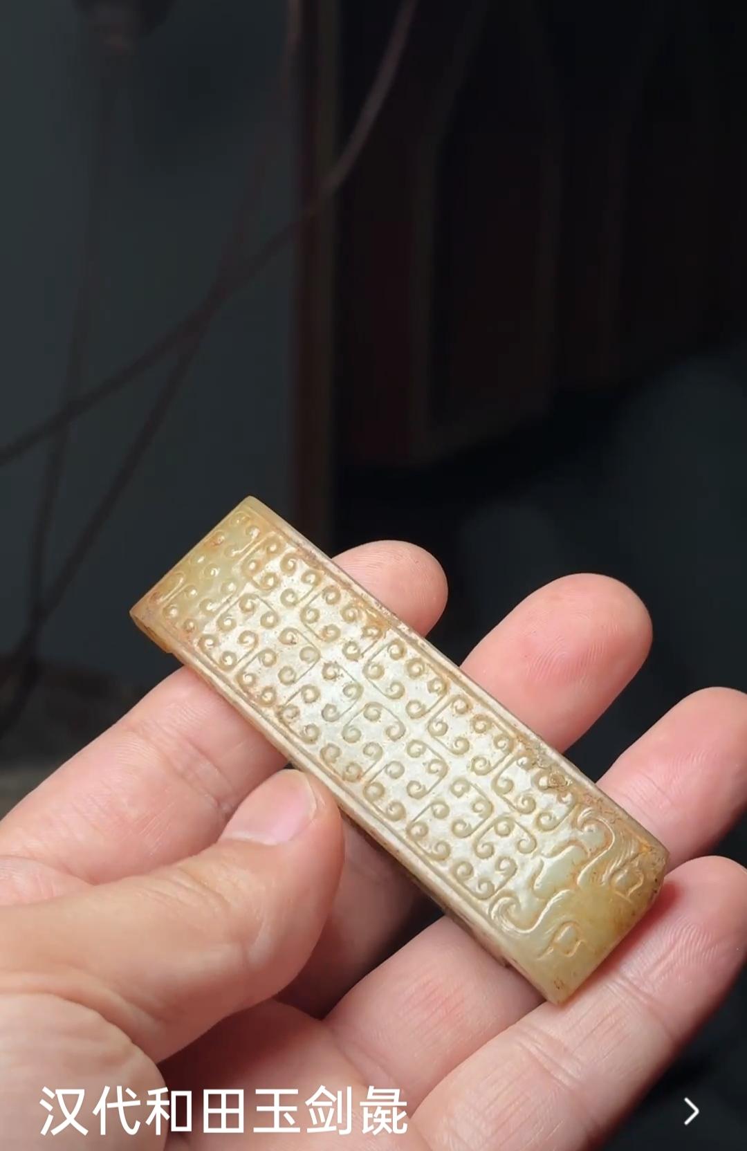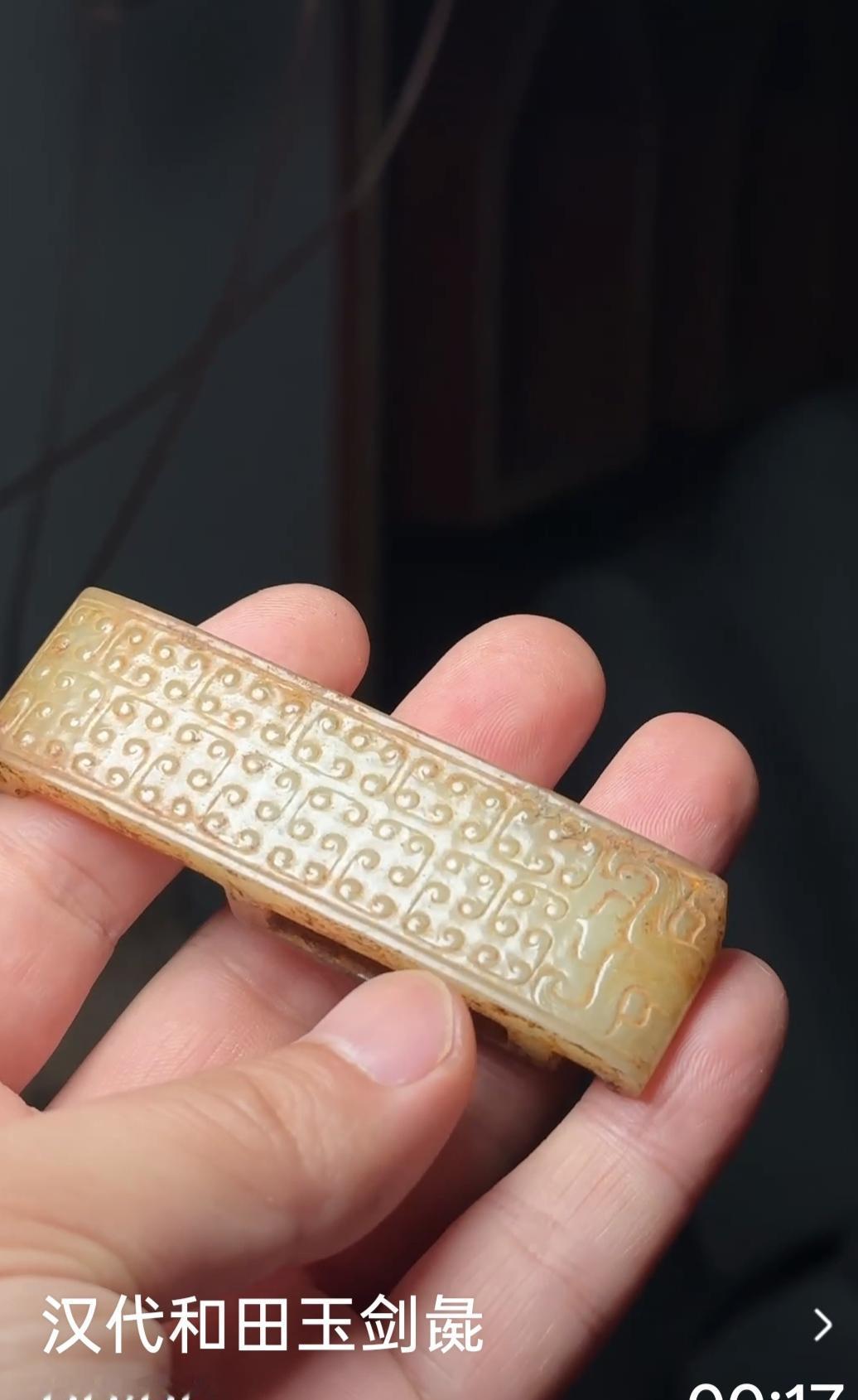 汉代和田玉勾云纹剑彘 原生红沁美物