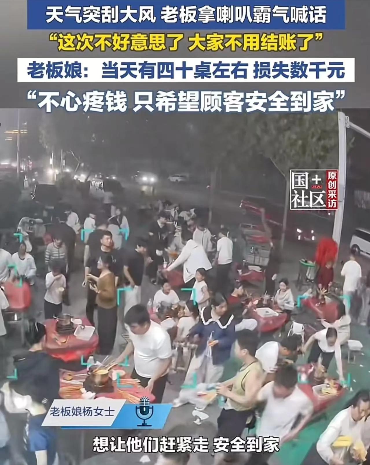 “所有朋友听我说!今天这顿饭,不用结账了!大家都别吃了,赶紧回家!安全第一,不好意思了各位!”