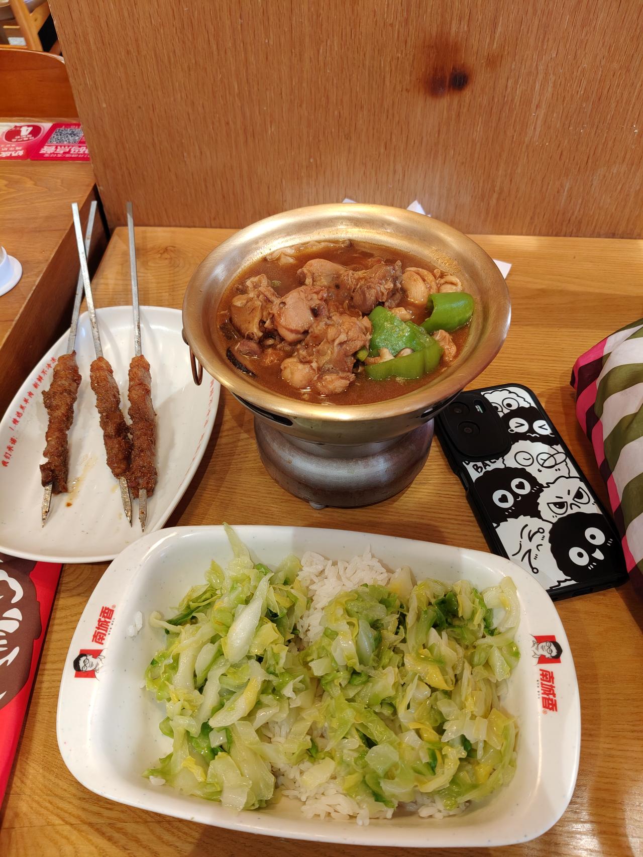 出了办事大厅正赶上饭点,在附近找了家南城香,一份黄焖鸡米饭外加三个羊肉串,一共花了30块,吃得很满足。