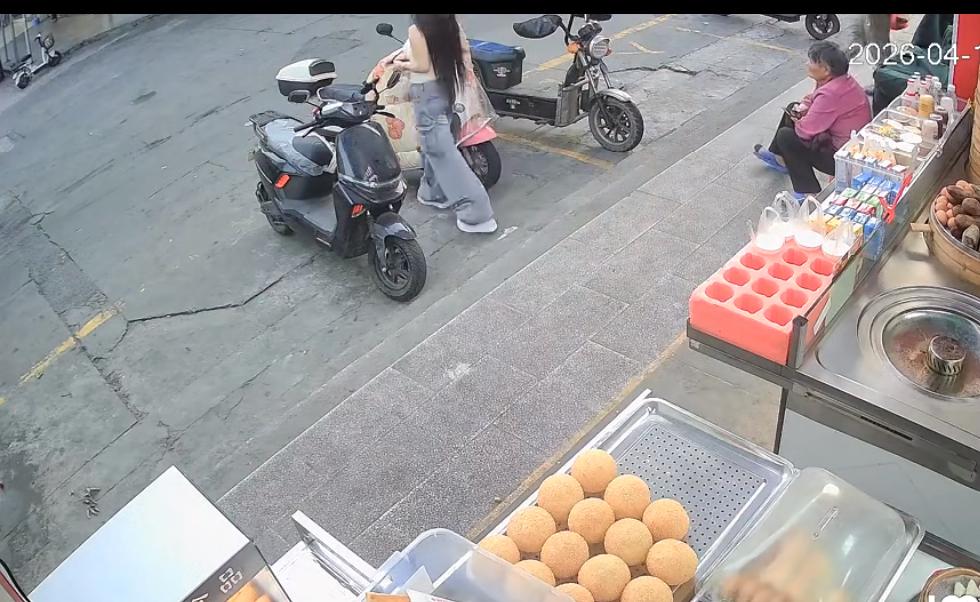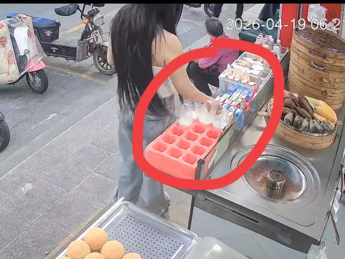 这个戴口罩的美女太不要脸了,买 4 块的酱香饼,偷走了两瓶伊利纯牛奶,监控拍下了她的丑行。看得出来她是起心为之,她是骑着小电驴过来的,拿着现金,买了 4 块钱的酱香饼之后背对着摊位在那里吃,其实是在暗中观察老板的动向。趁着老板转身的空当,她顺手抓起两瓶牛奶,得手后快步走到电瓶车前,发动电瓶车跑了,老板压根没有察觉。
