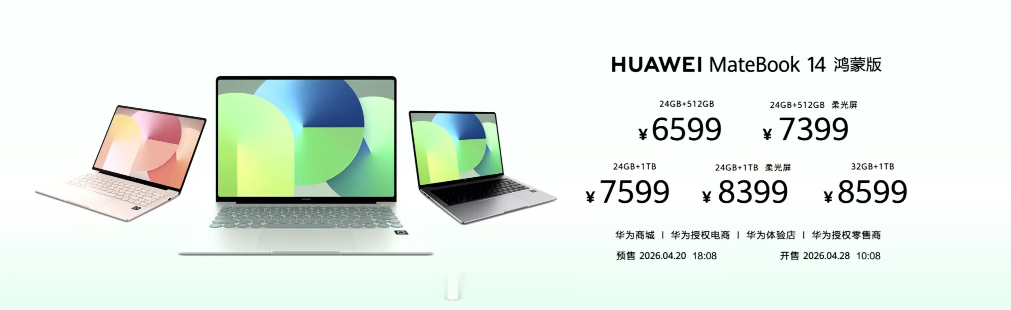 华为Matebook 14 鸿蒙版,6499元起售