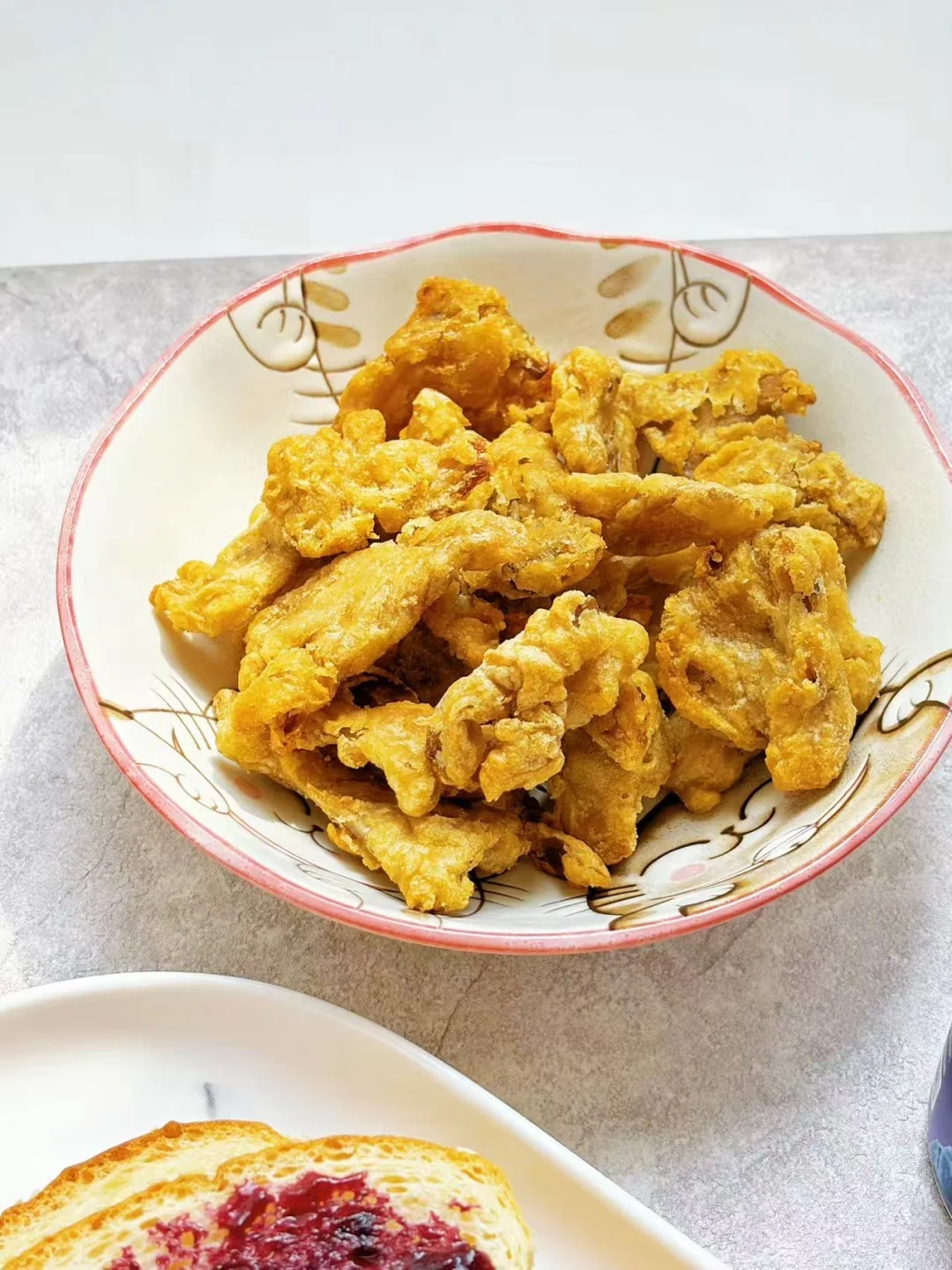 冰箱冷冻的炸平菇用空气炸锅180度烤8分钟