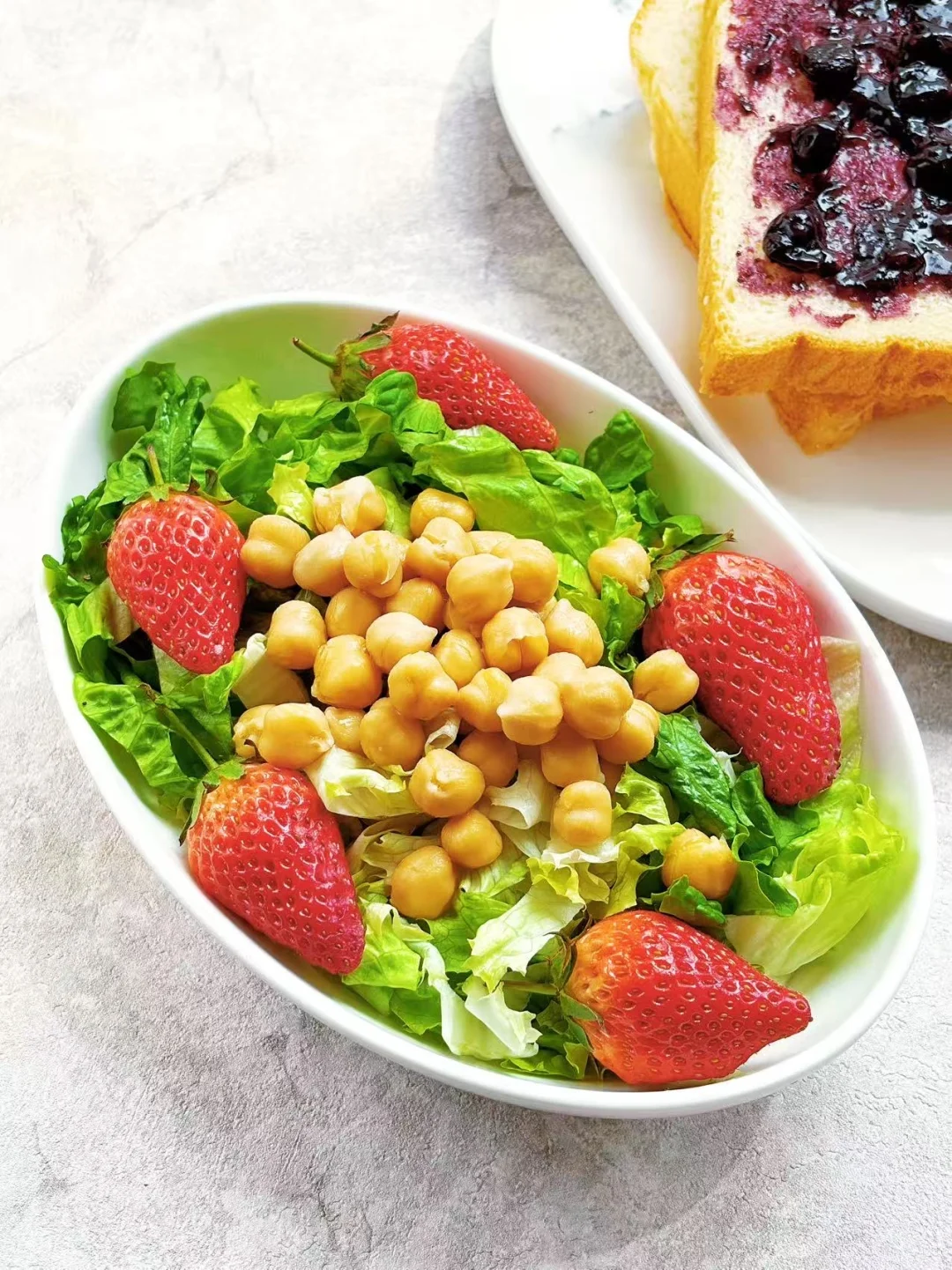 同时搞定生菜、草莓、鹰嘴豆清爽沙拉