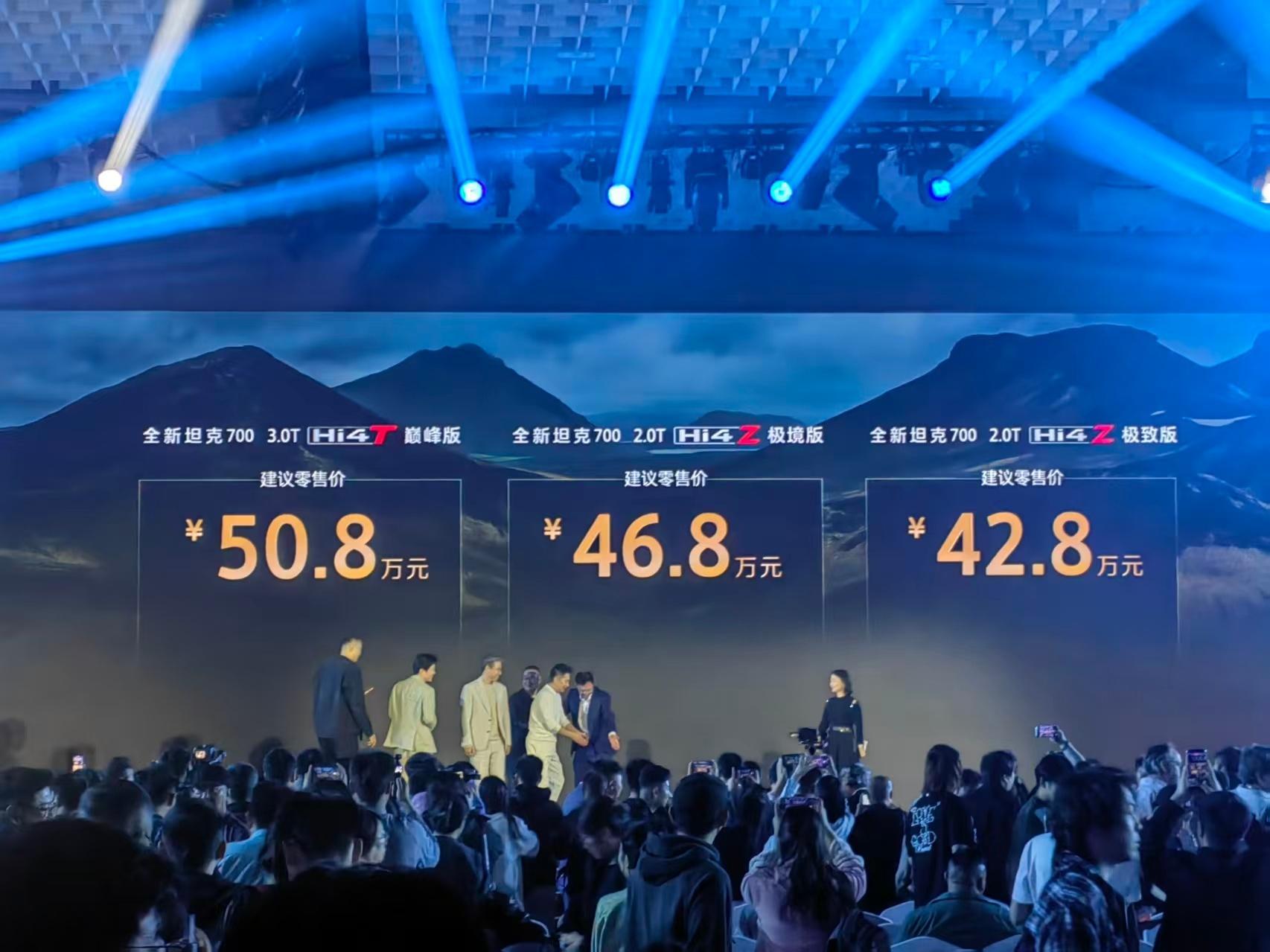 坦克700 正式上市3.0T Hi4 巅峰版 50.8万2.0T Hi4 极境/极致版本46.8万/42.8万
