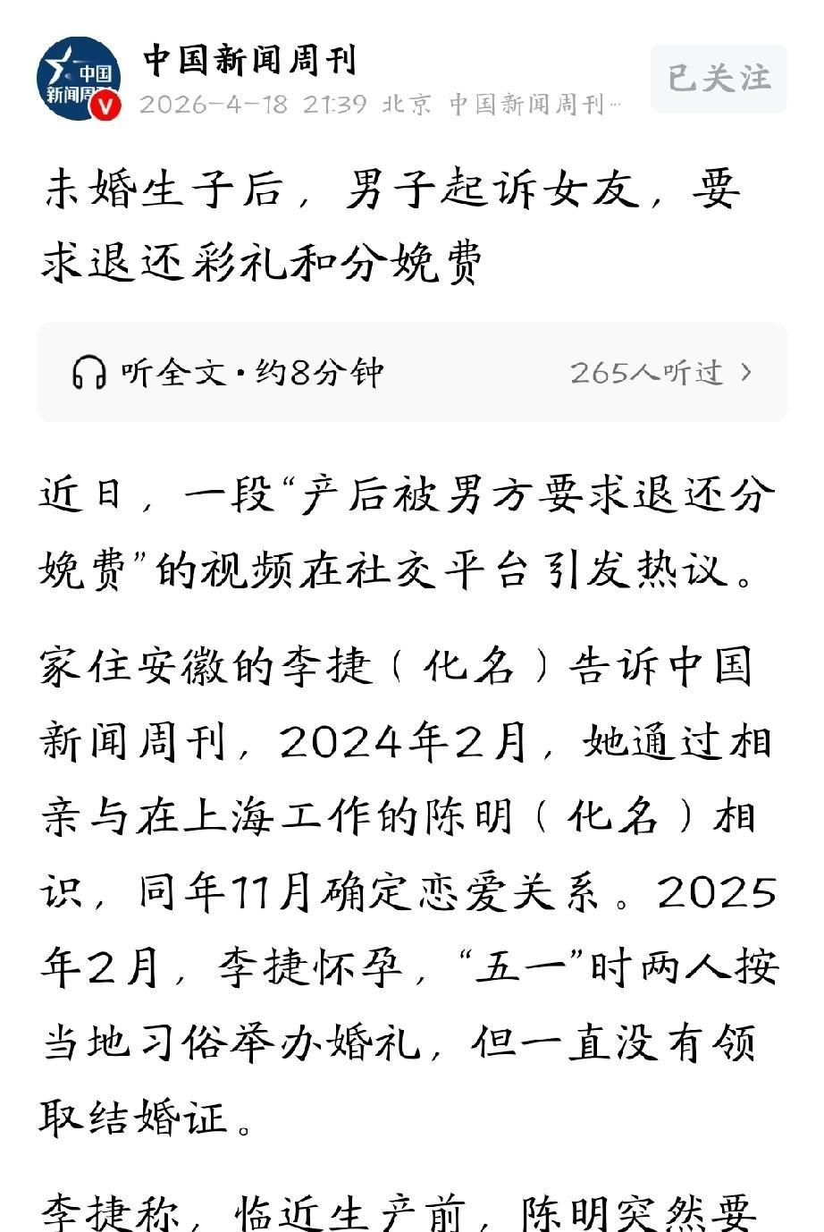 仅仅过了半个月,陈明的起诉书就寄到了她手里,不仅要分手,还要李捷返还那笔“巨额彩礼”。这世上最冷的,不是产房的空调,而是那个口口声声说爱你的人递来的传票。