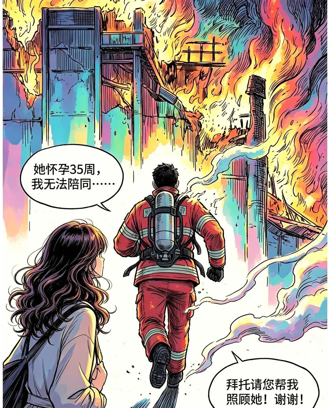 漫画 正能量 致敬消防员 温暖 孕妇