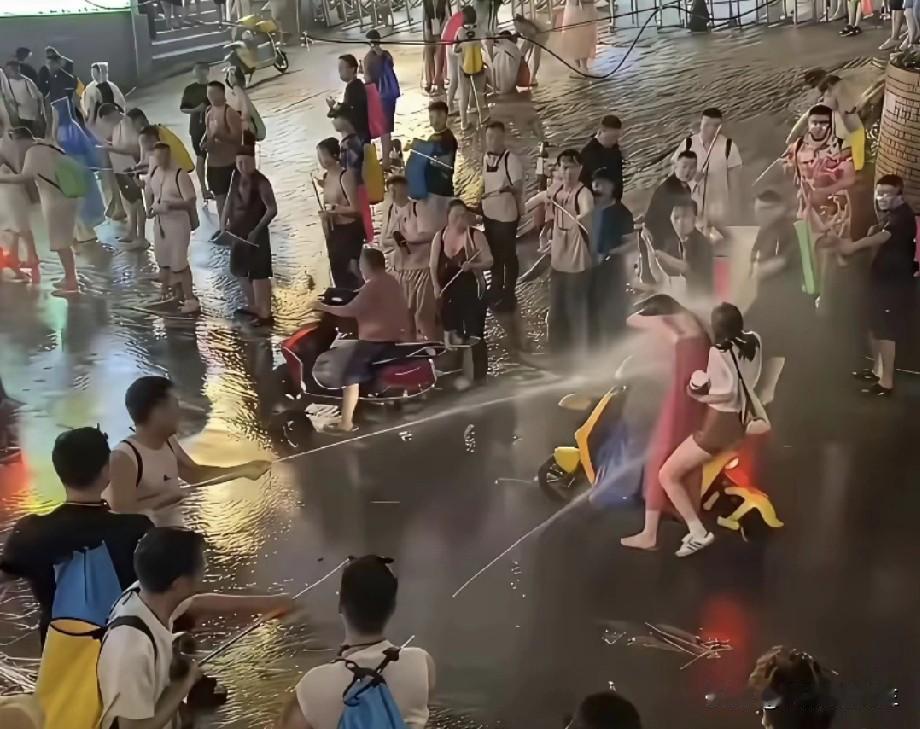 原本是相互表示祝福的泼水节,现在变成围攻女性的呲水节,高压水枪都上来了,泼水节还有什么意义?
