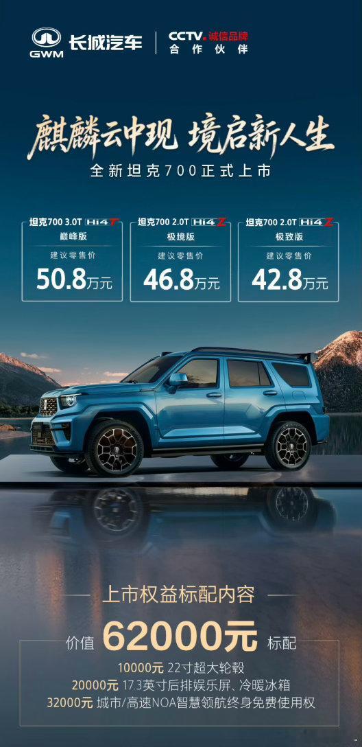 全新坦克700正式发布,今晚最炸的不是配置,而是价格。全新坦克700直接给到4