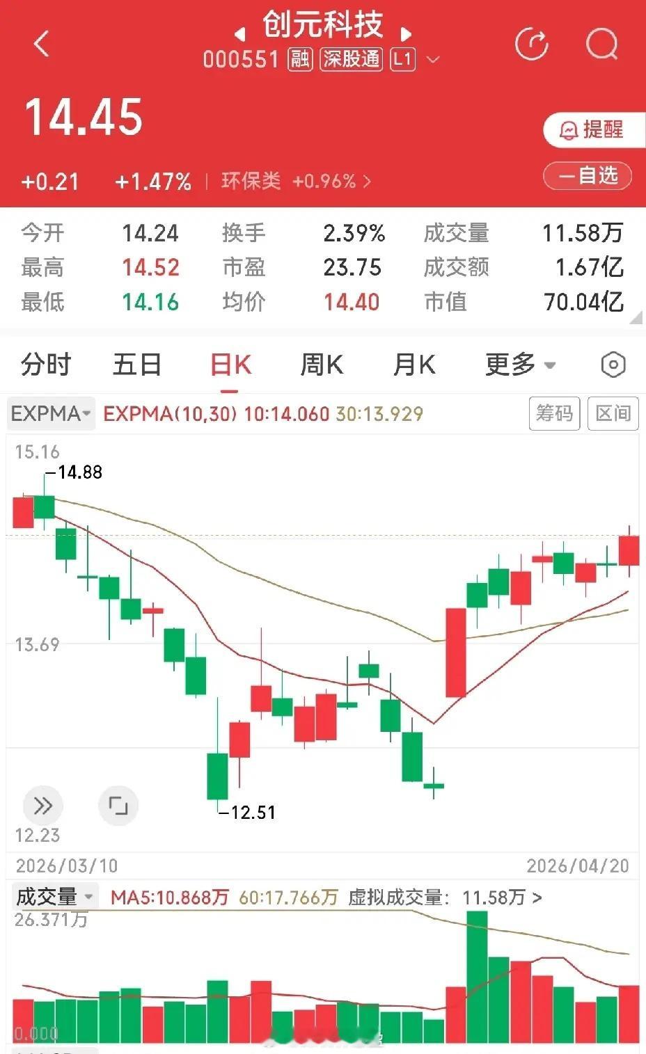 金开新能,曾经是算力租赁明星,经过将近二十天的回调,最近走出六连阳,走势比较平缓,如果能有大阳线出现,则整体形态就会向圆弧演变。创元科技,经过两轮探底下跌,W形双底已经比较明显,前面有一个涨停板,越过生命线,此后一直在上方横向震荡整理,生命线与涨停板高点,一直没有跌破,似乎形成有效支撑。