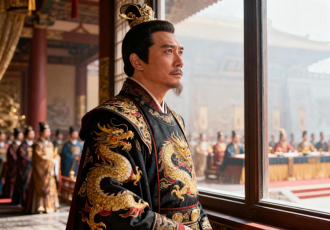 杨广被带到寝殿里看押。这时,他的小儿子赵王杨杲——才十二岁——不知从哪里跑了出来,扑到杨广身边。