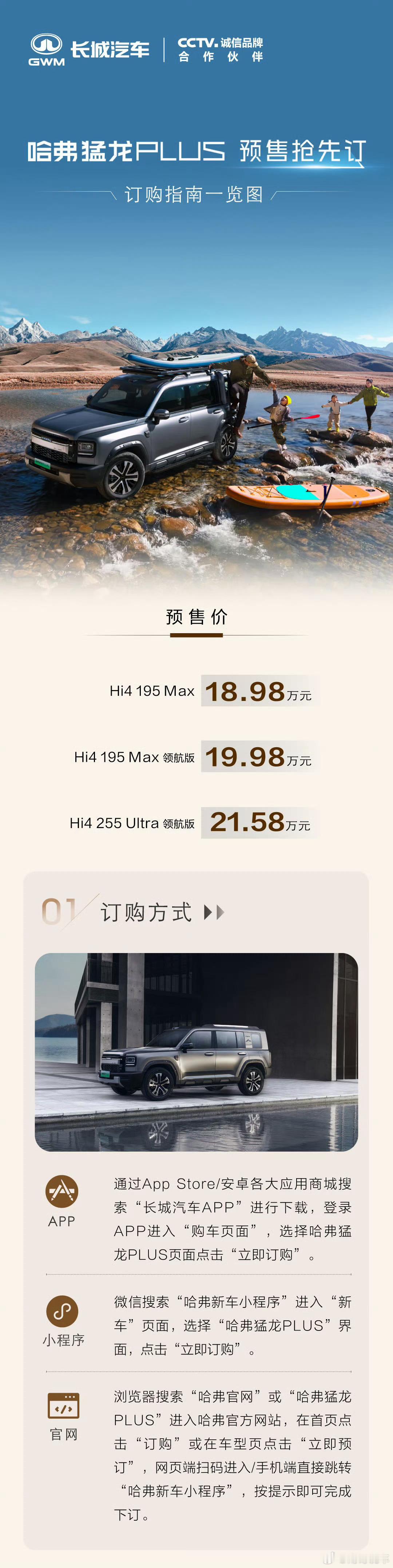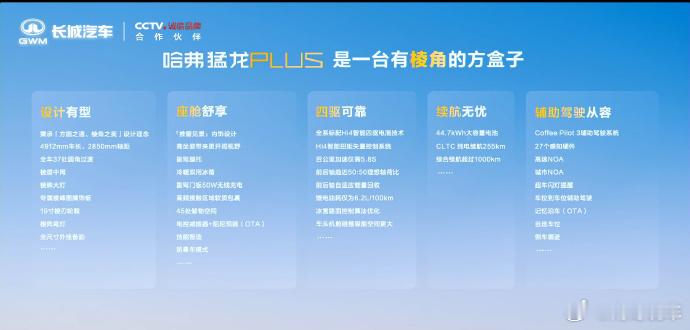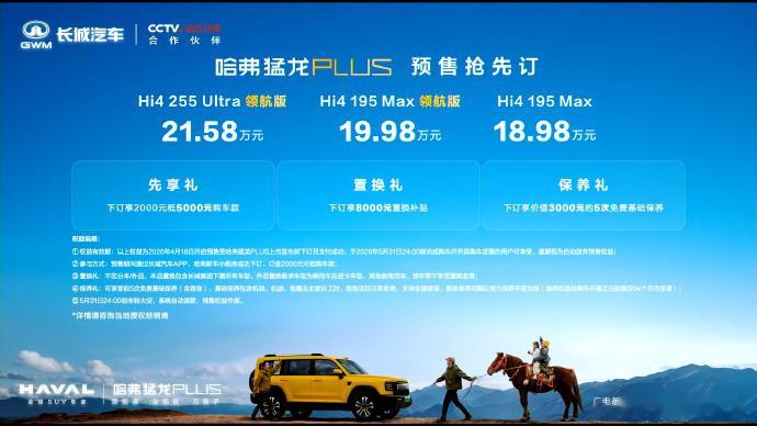 哈弗猛龙PLUS开启预售预售价18.98万-21.58万元,3款配置这车优势是:搭载长城Hi4智能四驱电混技术,覆盖城市家用、轻越野场景; Coffee Pilot 3:激光雷达+城市NOA+记忆泊车。中大型SUV+辅助驾驶+超长续航,你们觉得这个价格咋样?