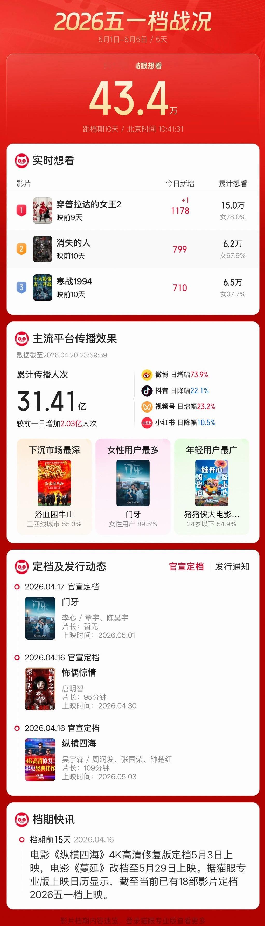 2026年五一档期电影战况激烈,陈思诚导演的新片《10间敢死队》压力很大。