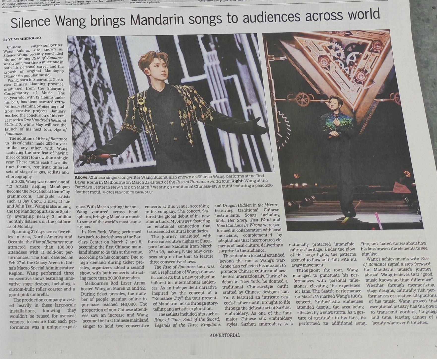 中国日报报道汪苏泷世巡📰中国日报报道:汪苏泷世巡收官!31天跨三大洲11场,全