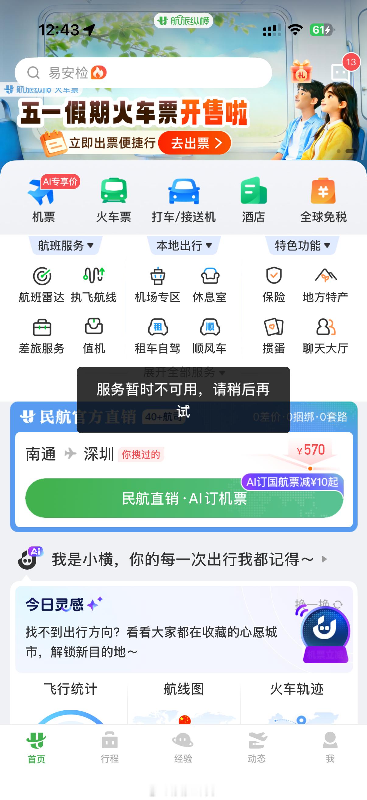 航旅纵横崩了,打开想看行程,一直显示网络异常,这是咋回事航旅纵横 航旅纵横崩了