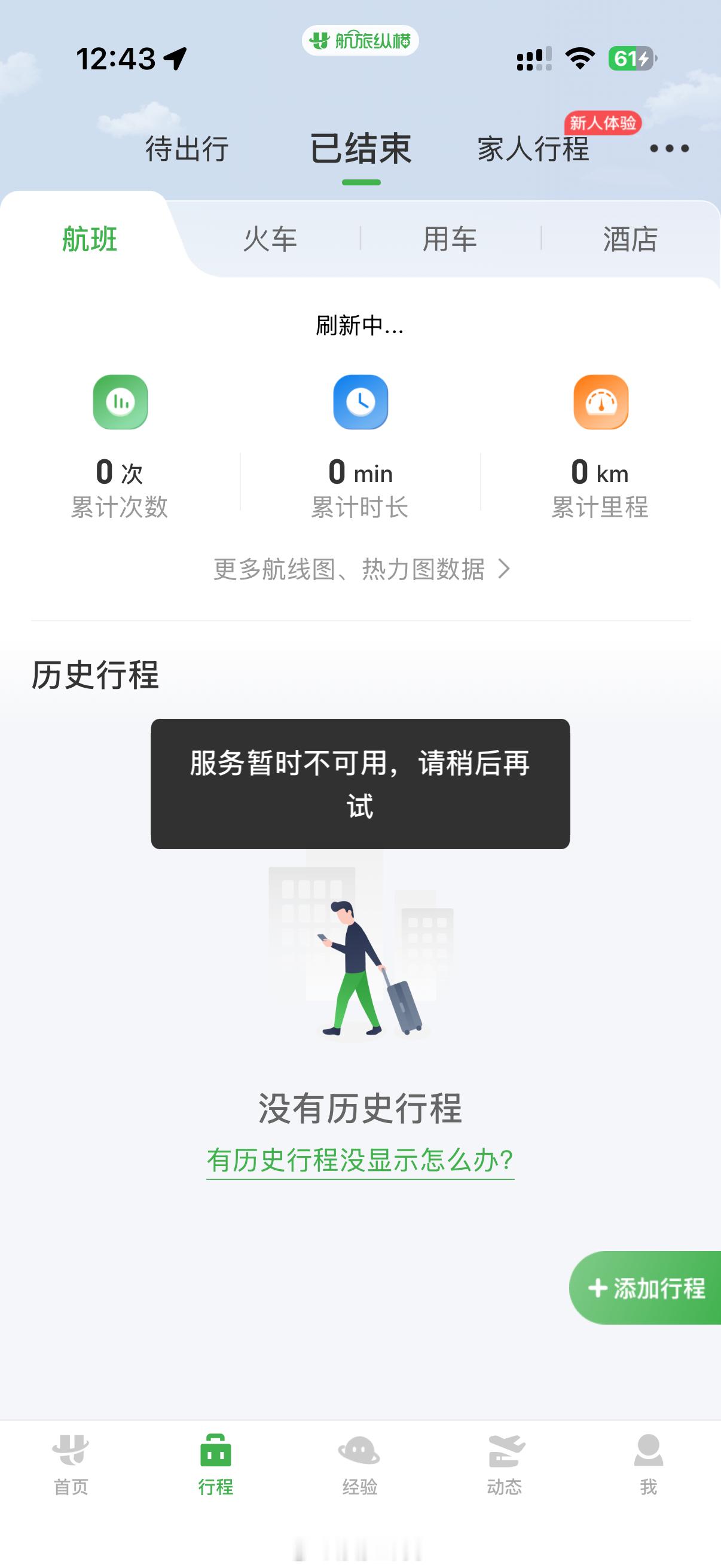 航旅纵横崩了,打开想看行程,一直显示网络异常,这是咋回事