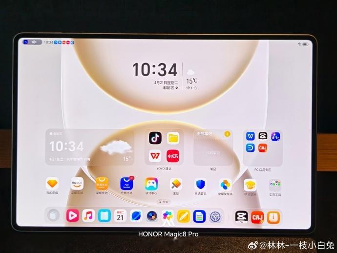 荣耀 MagicPad3 Pro 12.3 正面真机照,采用一块 165Hz OLED 屏幕,边框控制的不错,看着很舒服,处理器是骁龙 8 Gen5,看价格了。