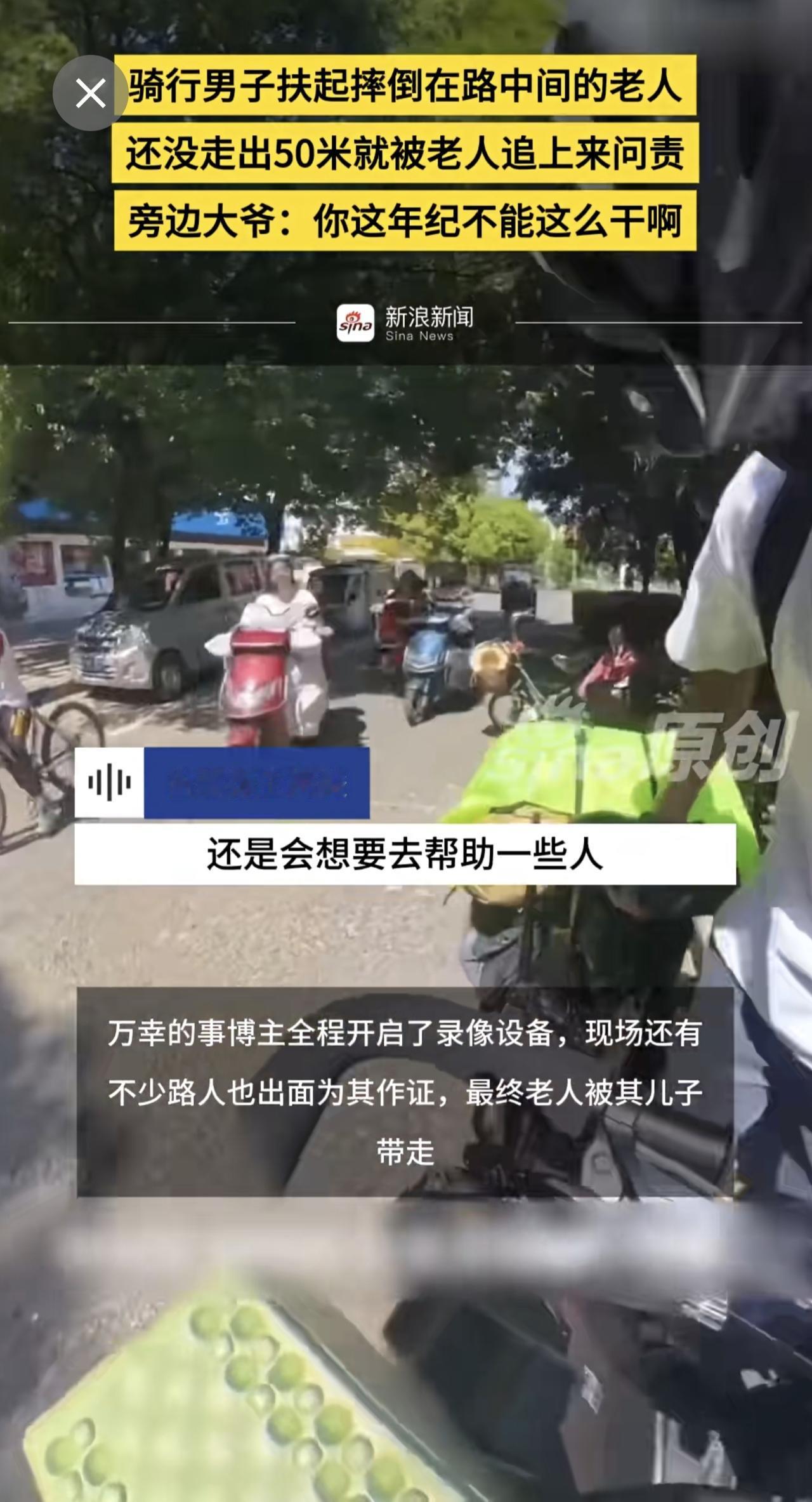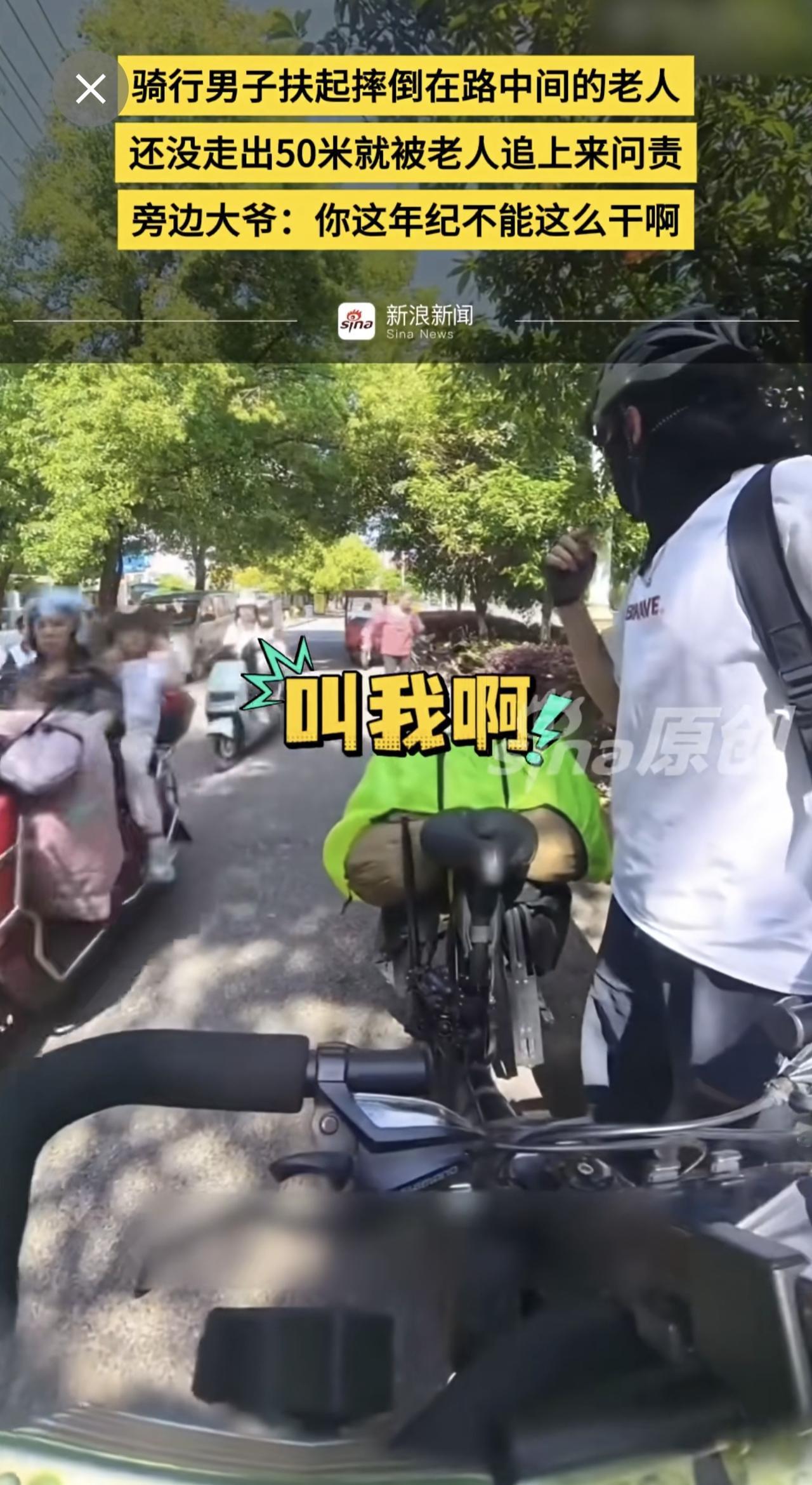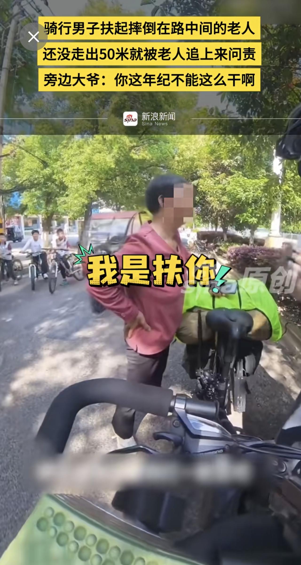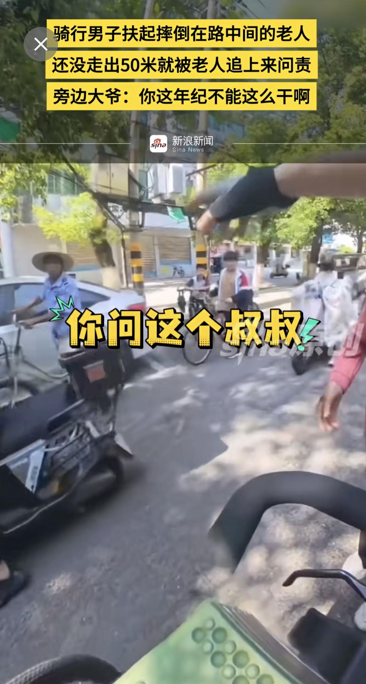 骑行男子扶起摔倒在路中间的老人,还没走出50米就被老人追上来问责,旁边大爷:你这