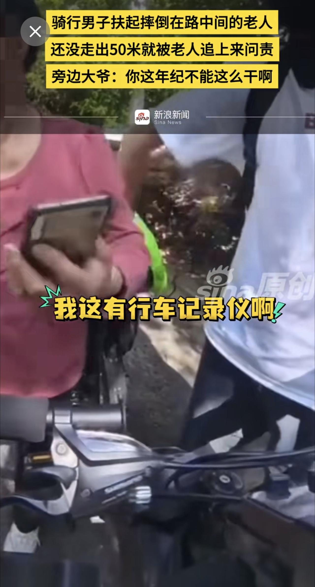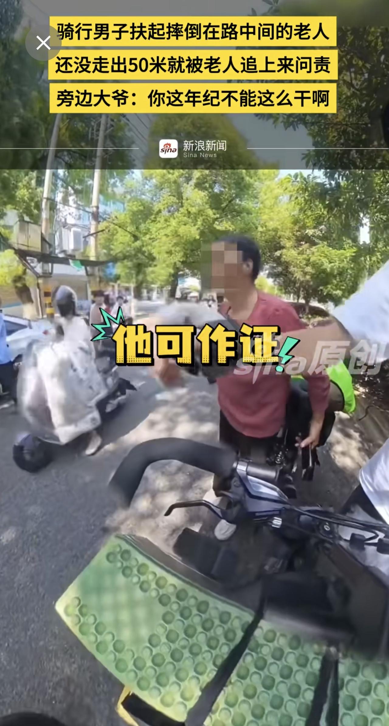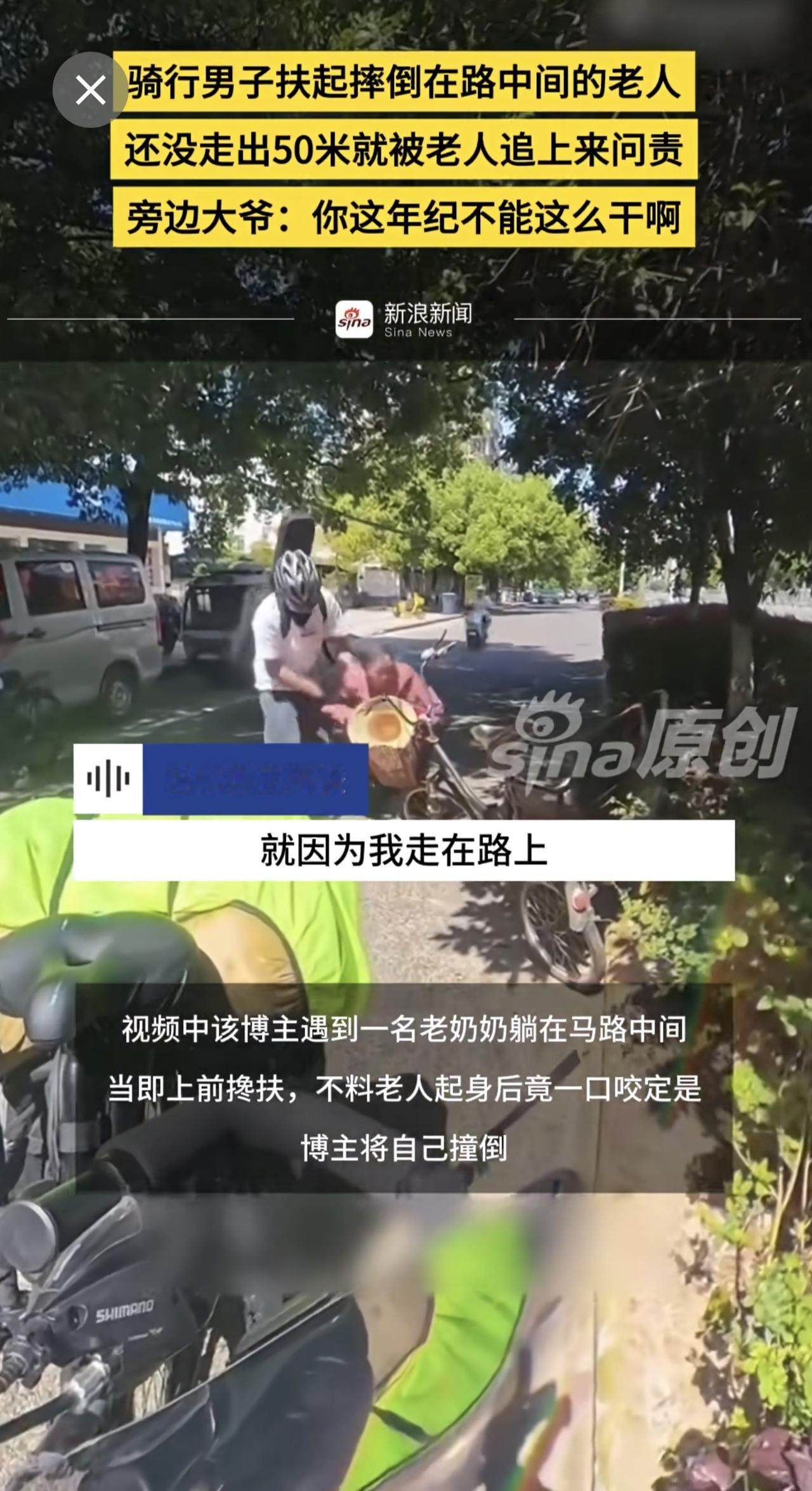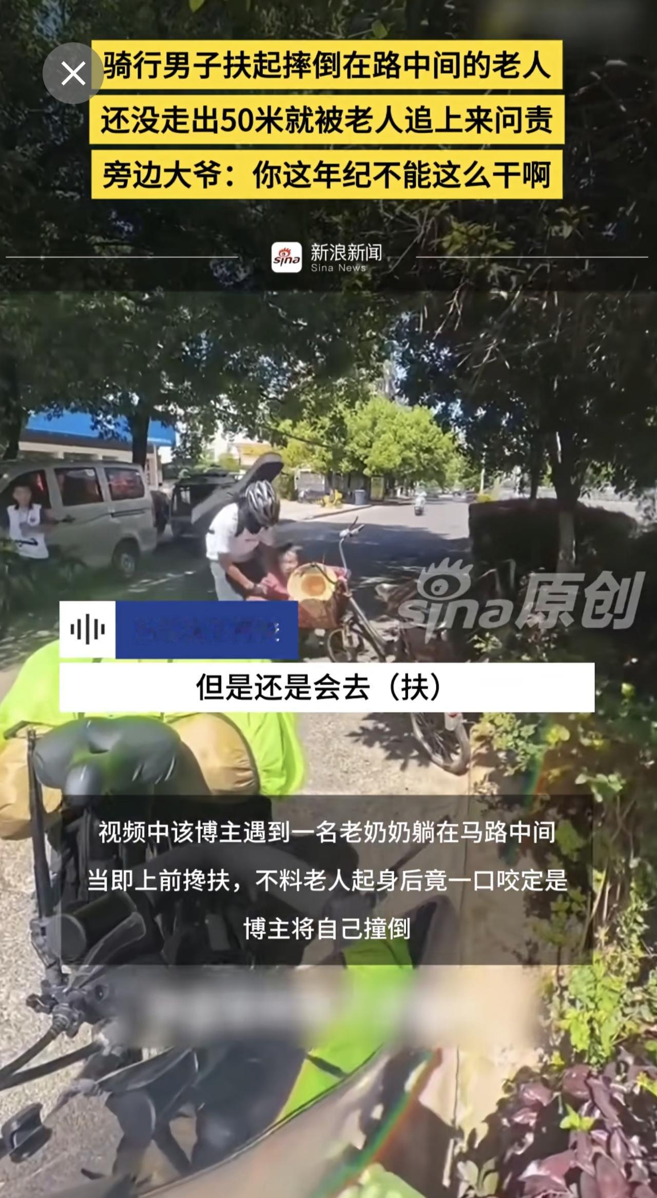 骑行男子扶起摔倒在路中间的老人,还没走出50米就被老人追上来问责,旁边大爷:你这