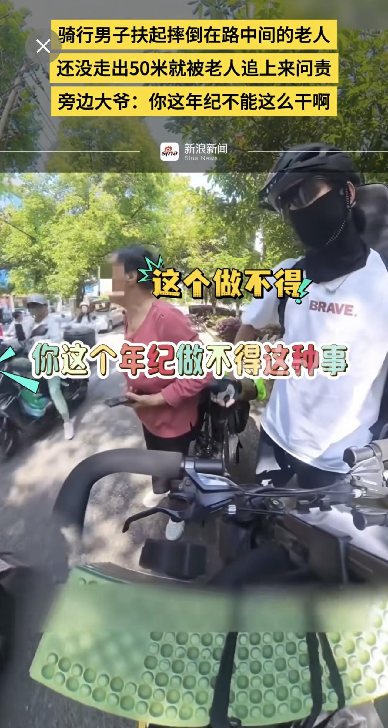 骑行男子扶起摔倒在路中间的老人,还没走出50米就被老人追上来问责,旁边大爷:你这年纪不能这么干啊
