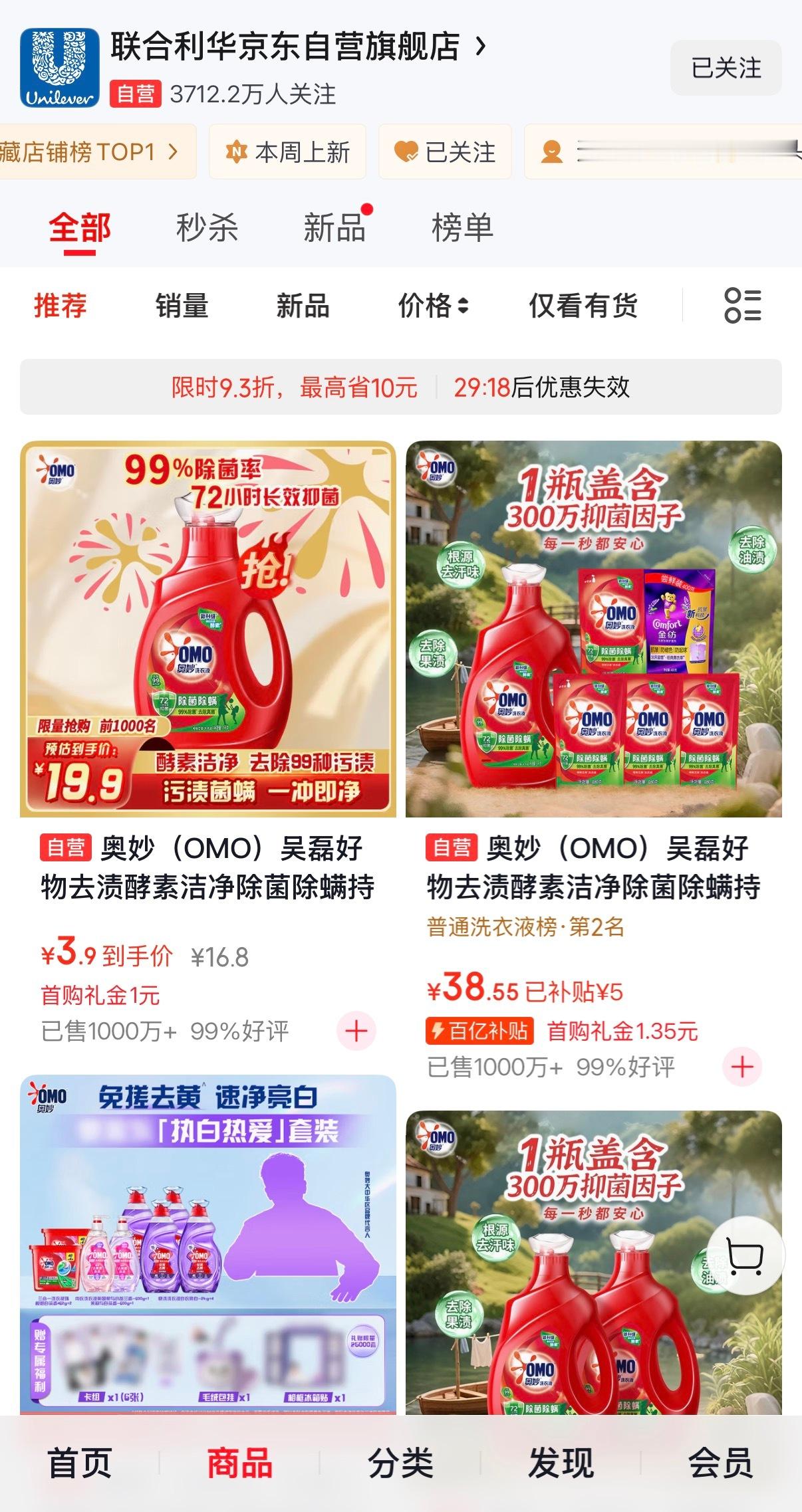 樊振东 奥妙 这次购买渠道在京东,【认准京东】关注联合利华京东自营旗舰店,首页可预约【☆执白热爱套装】 📣