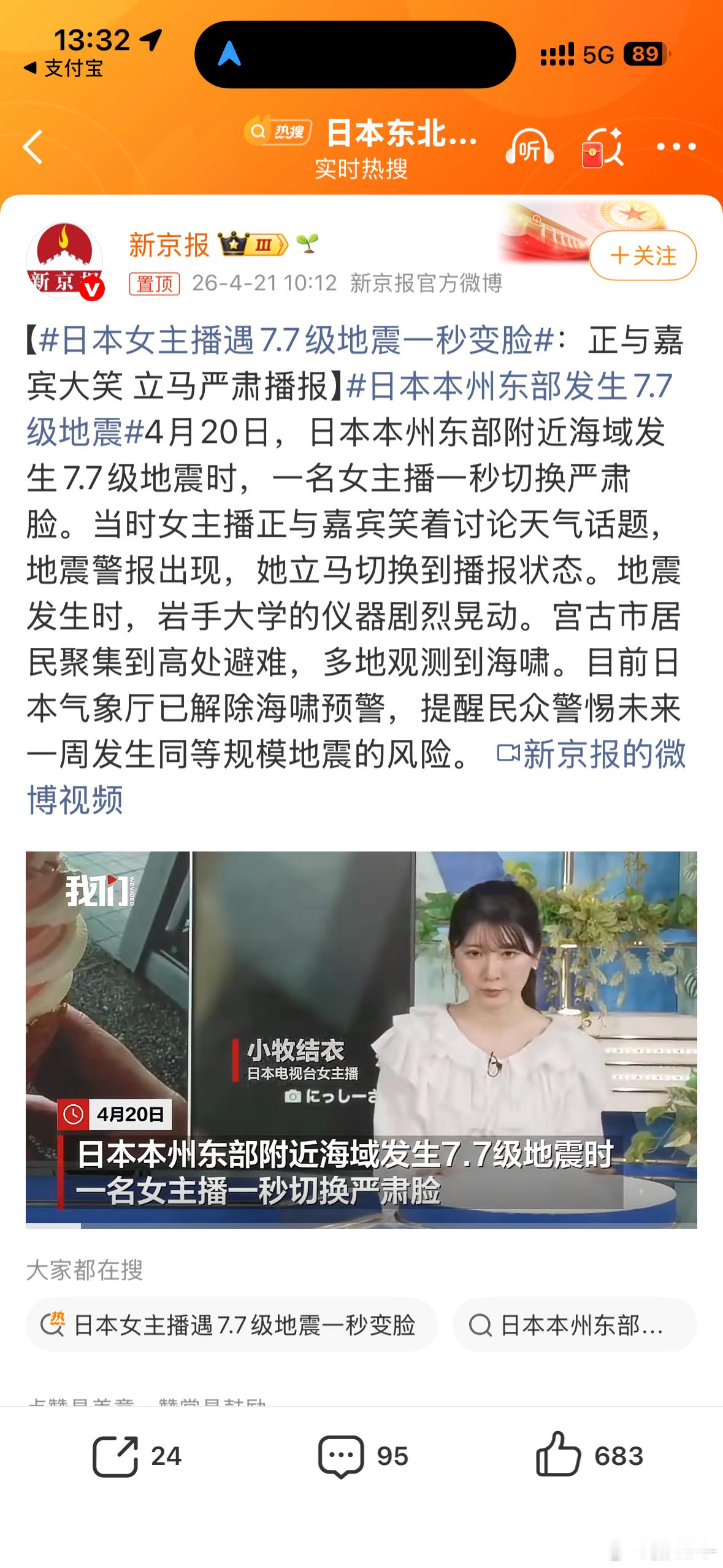 日本女主播遇7.7级地震一秒变脸嘻嘻秒变不嘻嘻