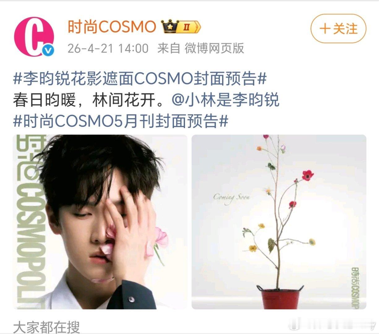 李昀锐时尚cosmo五月刊封面预告,恭喜小林正式解锁首本五大!