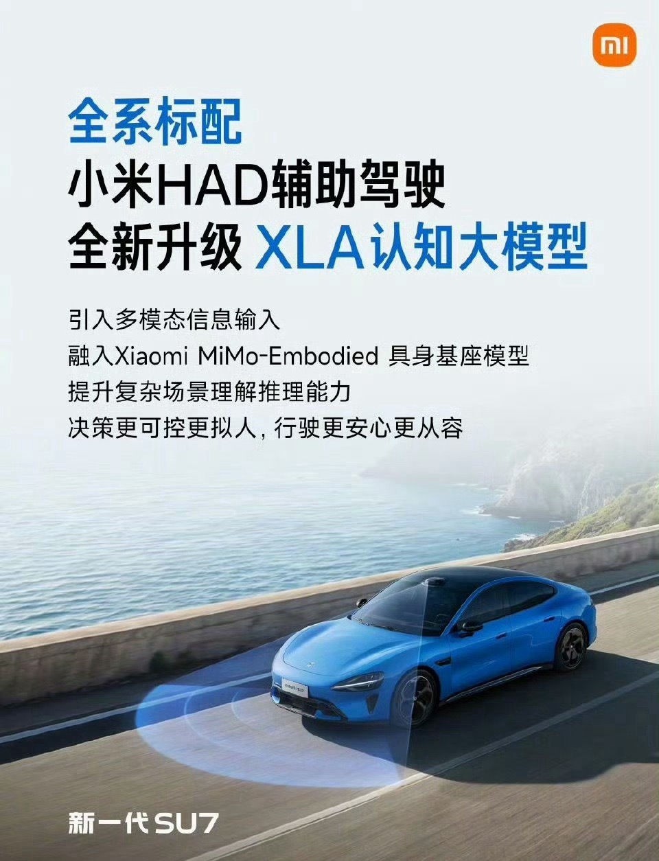 看了小米这次智驾访谈,感觉小米这是直接把行业天花板拉高了!依托XLA大模型、VLA与世界建模技术,再加上自研MiMo-Embodied具身智能基座,行业首次打通辅助驾驶与具身机器人两大任务,实现能力双向迁移。过去两年,小米HAD辅助驾驶连更3个大版本,用2年走完同行5到10年的技术路,实际体验更是拉满,作为小米车主,我也是用了很长时间,城区通行、预判避险、泊车领航都十分丝滑,智能又实用,技术迭代速度与体验感双双领跑行业。小米新SU7XLA大模型揭秘车是最先落地的具身智能