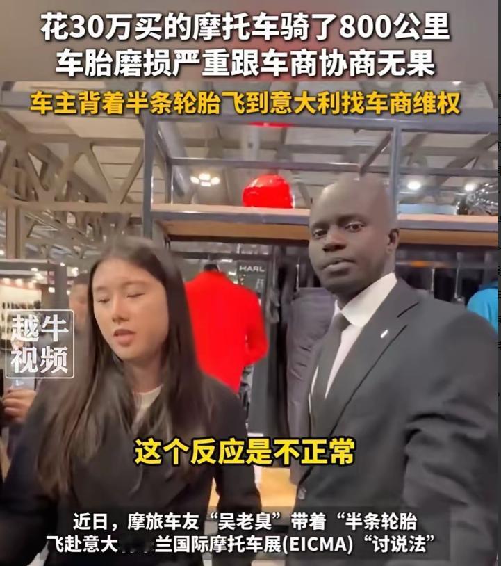 “遇到狠人了!”一位博主花30万在4S店购买了一辆宝马摩托车,结果只行驶了800公里,轮胎就出现了严重的磨损,找到4S店商讨没有结果,男子干脆办了签证,背着半条轮胎飞到意大利米兰摩托车展,找到宝马总部维权去了。