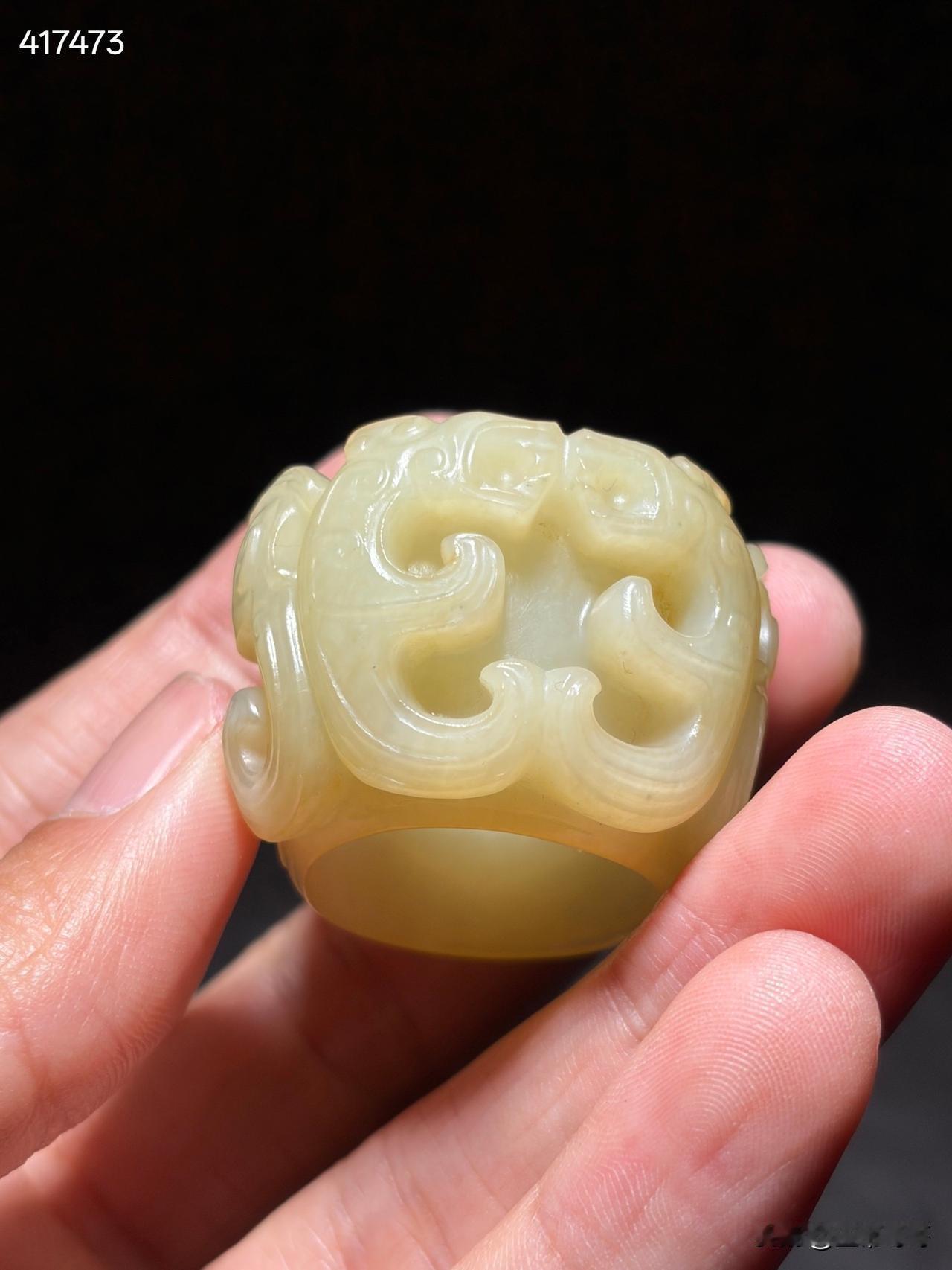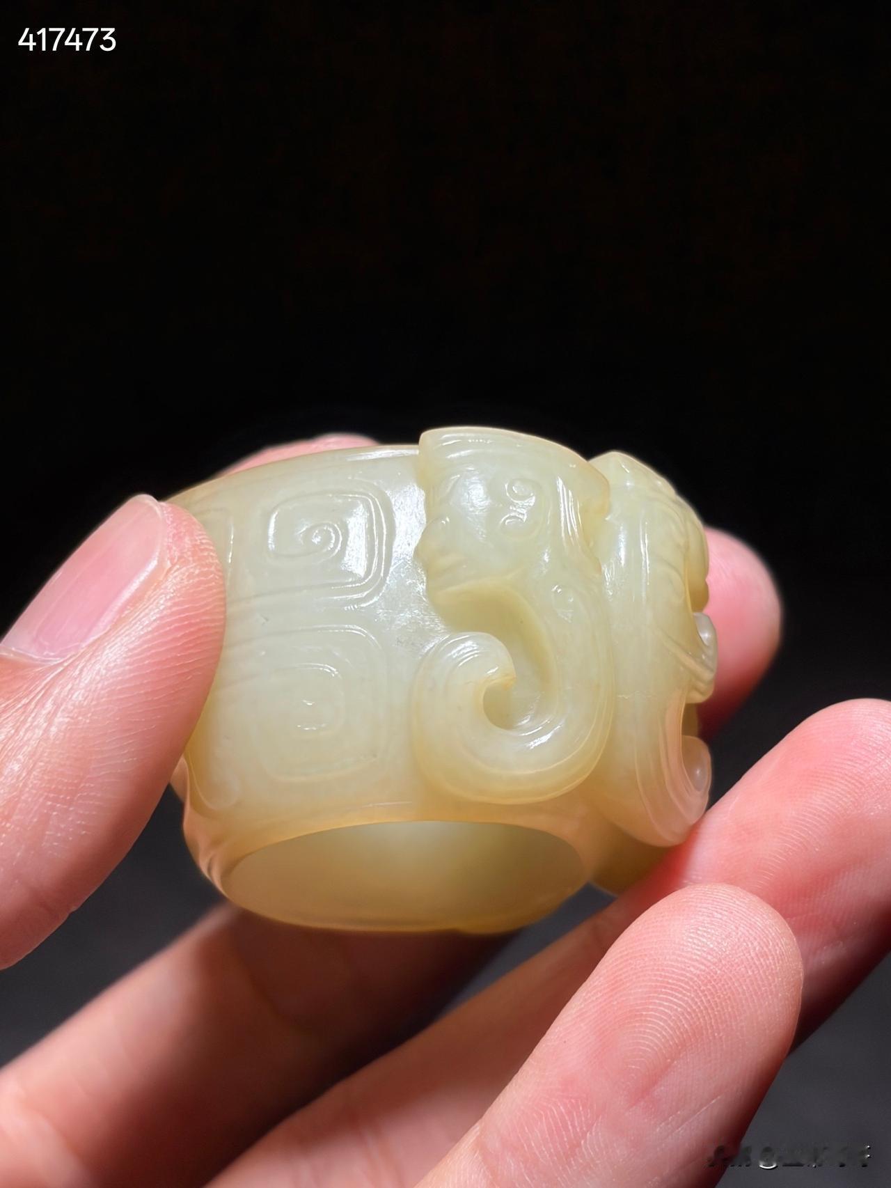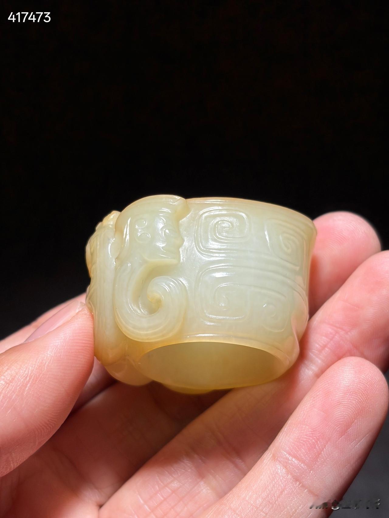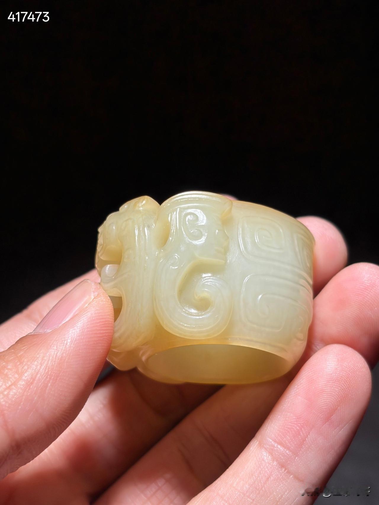 和田玉神人纹玉蠂 尺寸4.3×3.7×2.6厘米,内径2.26厘米重量42克