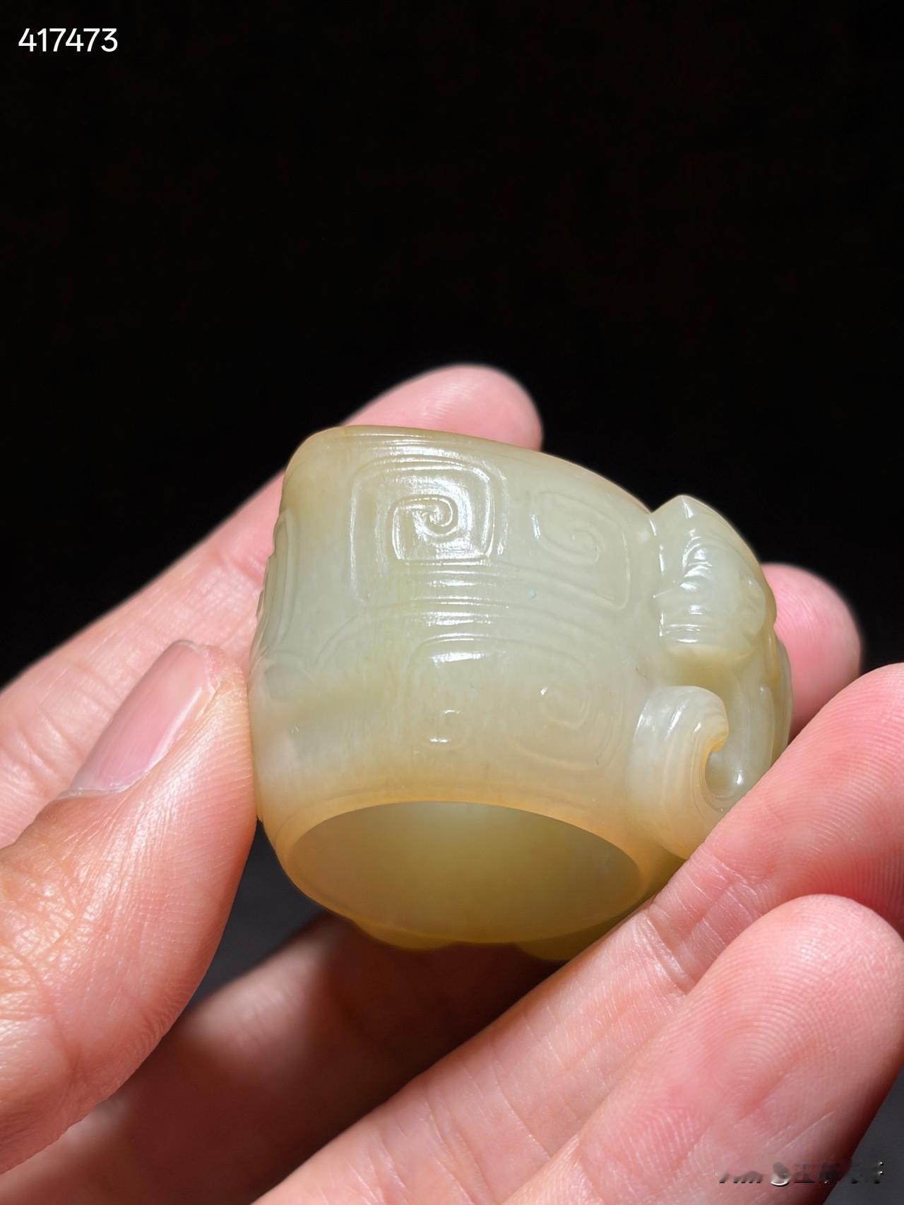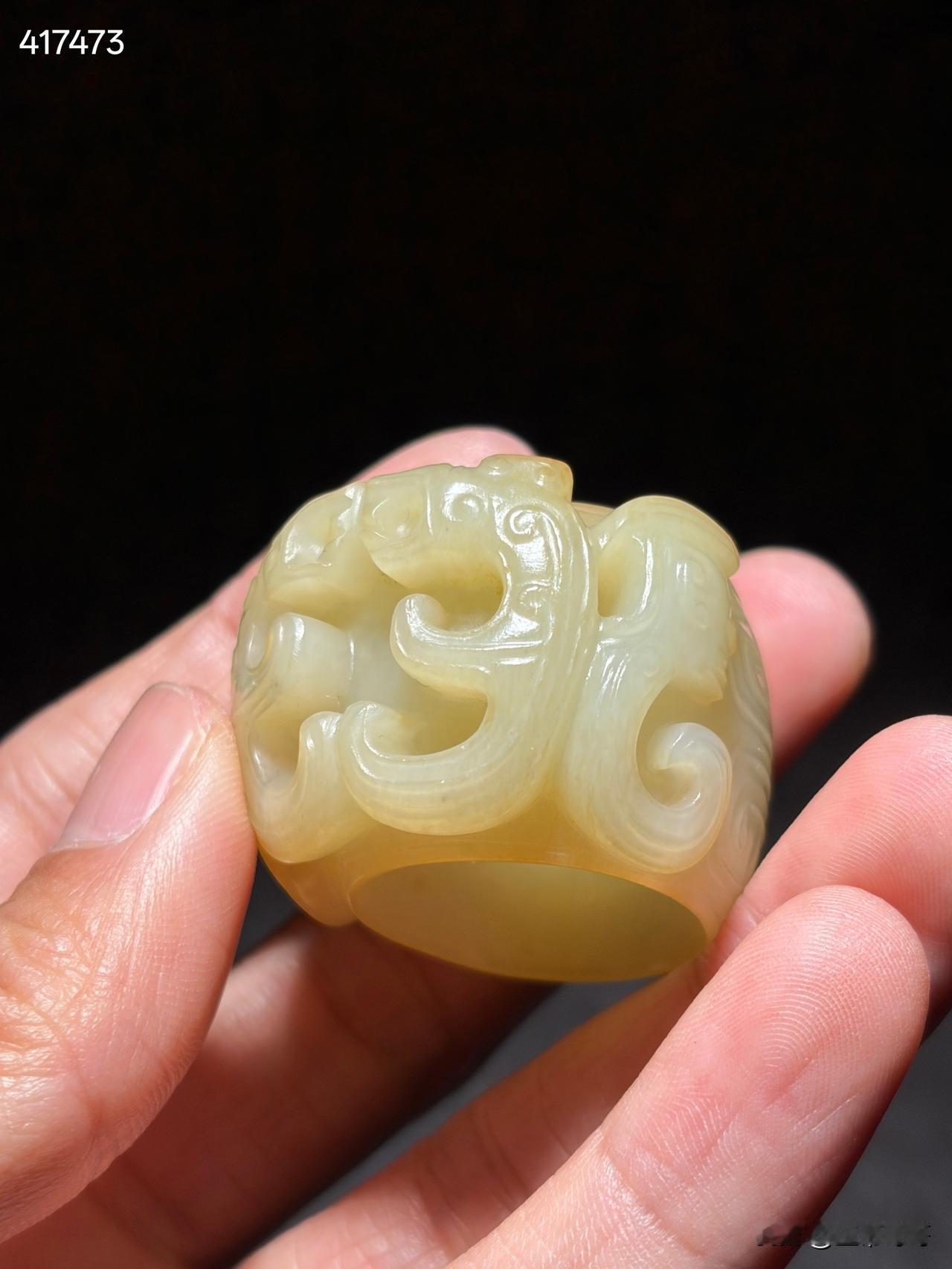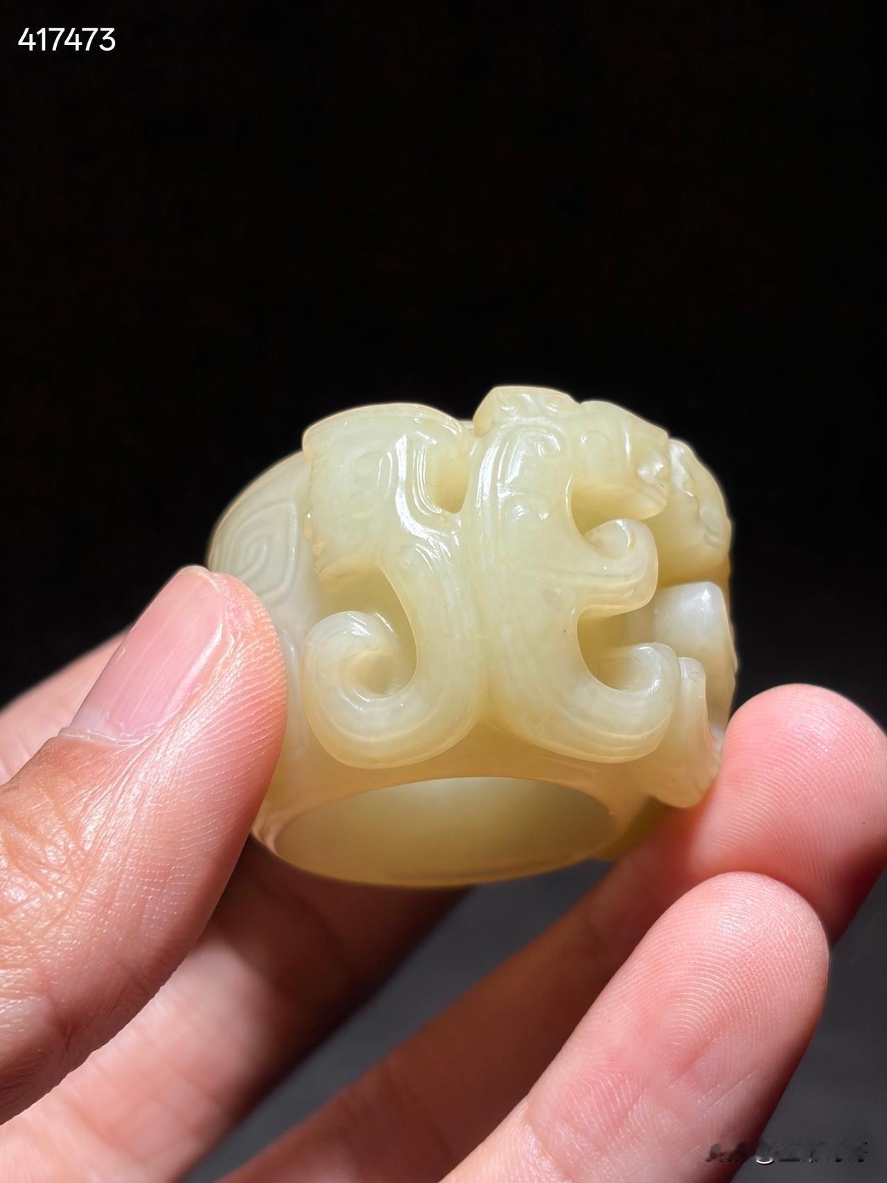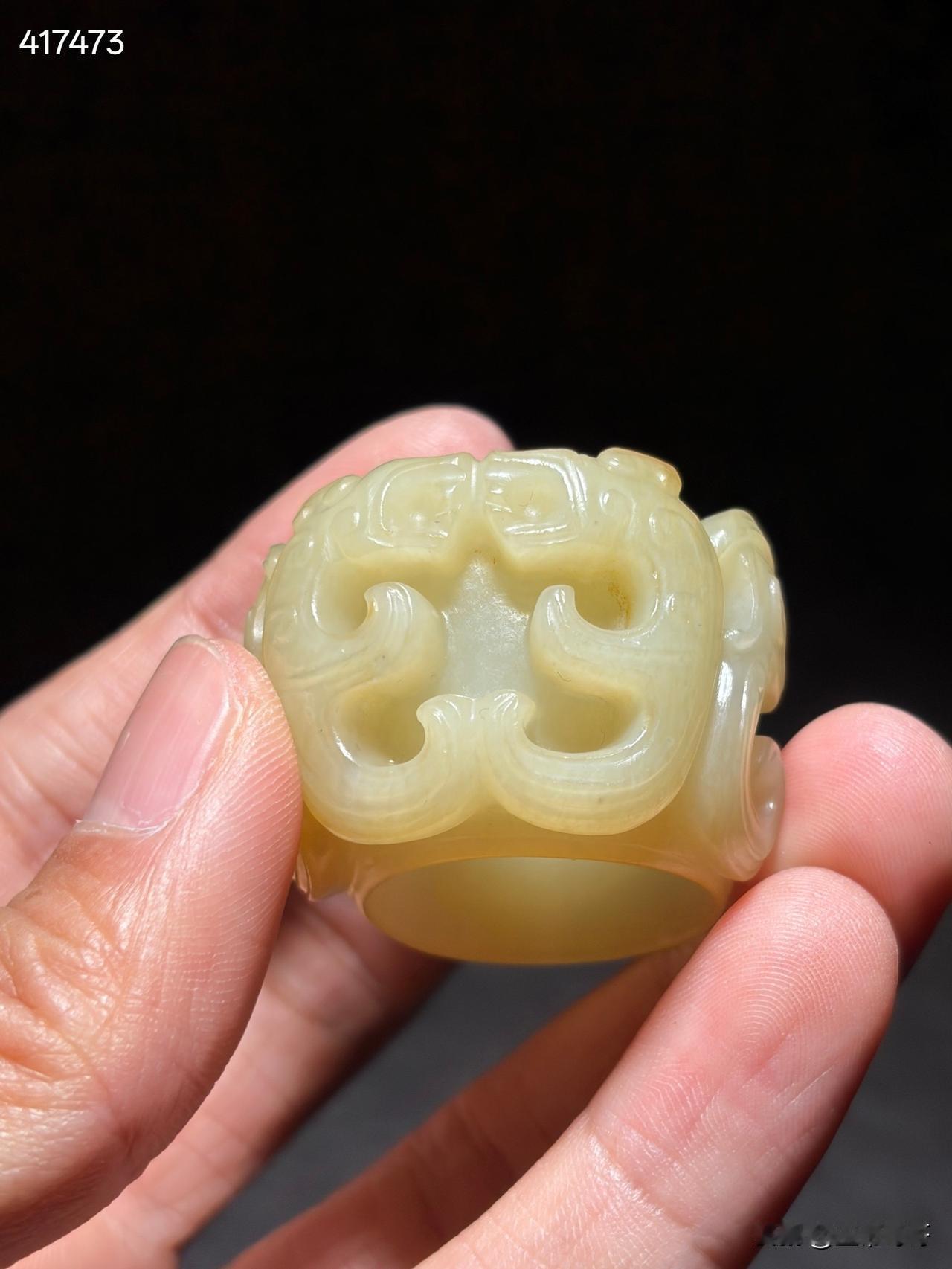 和田玉神人纹玉蠂 尺寸4.3×3.7×2.6厘米,内径2.26厘米重量42克