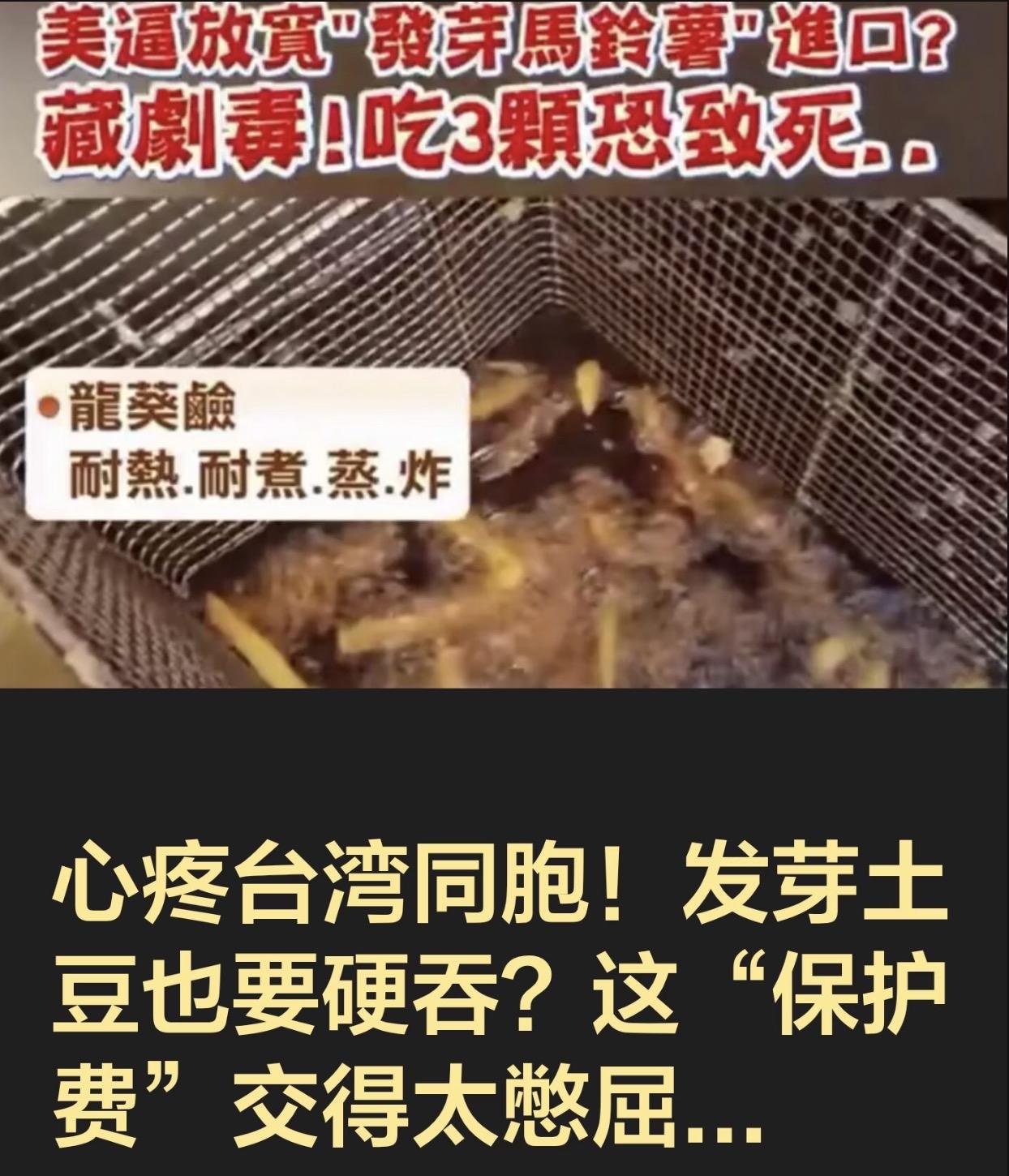 台湾要从美国进口发芽土豆,这事引发岛内民众强烈反弹!
