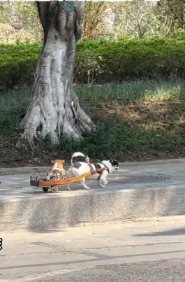 萌坏了,看这两个散步的“毛孩子”近日,重庆,一网友路遇一只小狗拉着狗宝宝溜达逛街