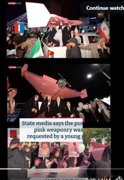 伊朗的粉色武器加上妇女头巾,极具视觉冲击力。